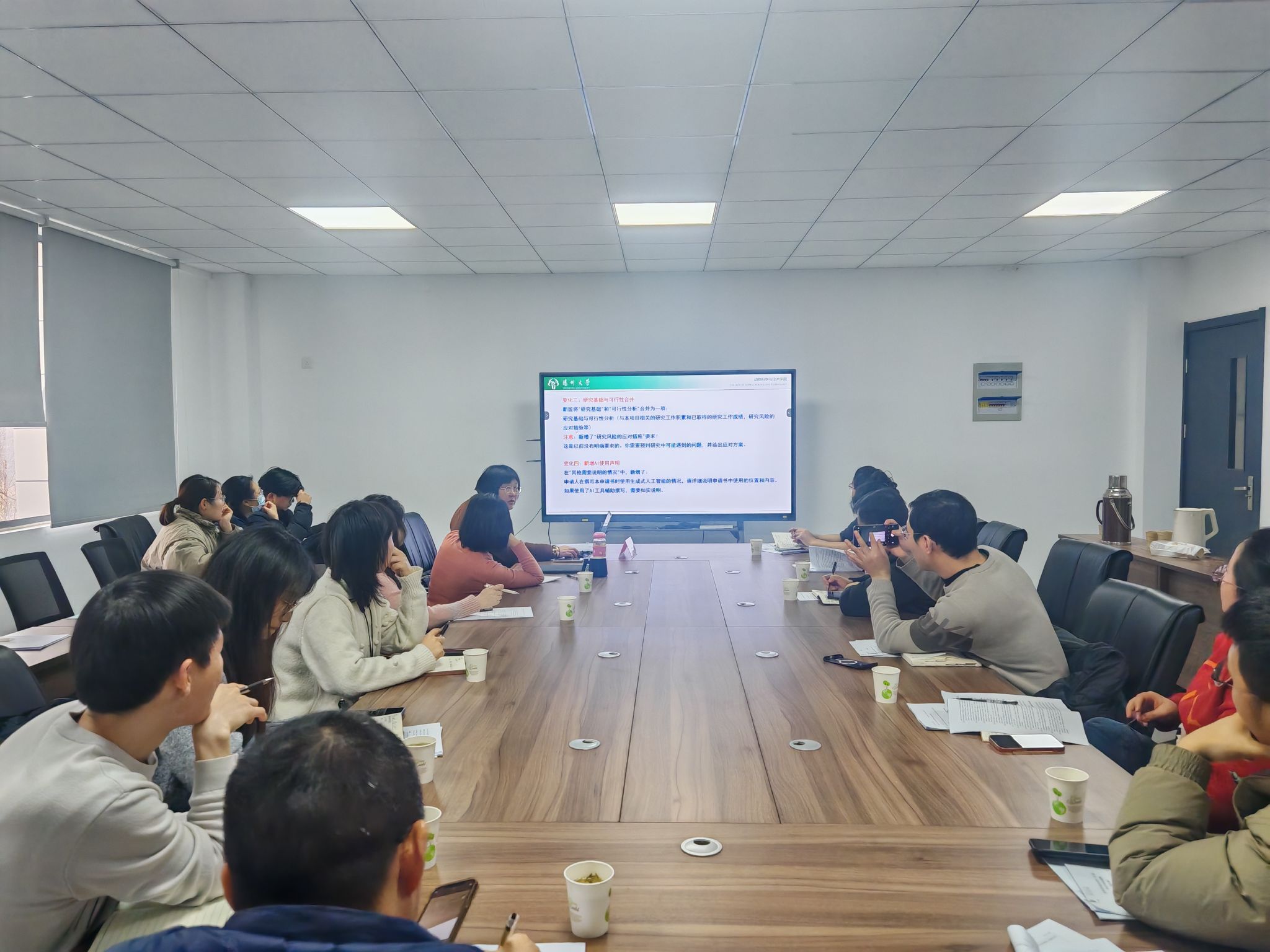 本网讯 1月18日下午,家禽育种与生产团队国家自然科学基金项目申报专题报告会在基因库323会议室顺利召开。本次会议特邀扬州大学李碧春教授莅临指导,围绕2026年国家基金申报开展专题辅导。团队负责人陈兴勇教授、学院申报基金的老师参会,会议由学院副院长曹祖兵主持。
