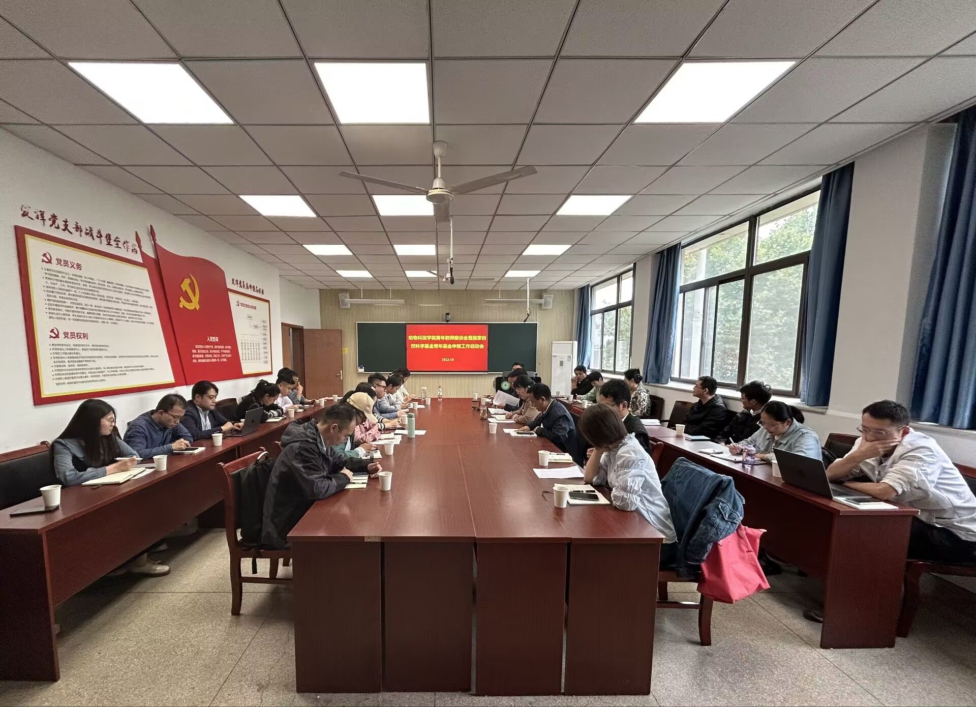 本网讯 10月12日下午,动物科技学院青年教师座谈会暨国家自然科学基金青年基金申报工作启动会在动物科技学院306会议室召开,学院党委副书记(主持工作)沈兆梅、院长张子军、副院长凌英会及近三年新进教师参加座谈会。