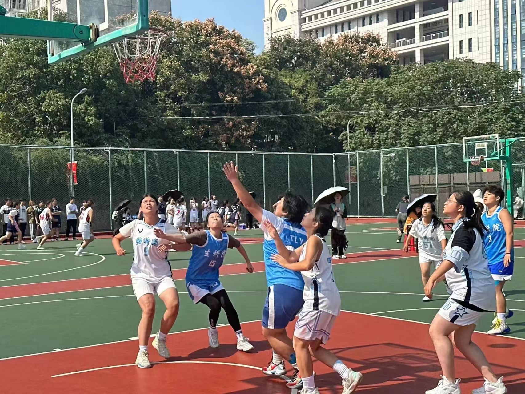 此次比赛,女篮队员们不惧灼灼烈日,不惧艰苦训练。滴滴汗水,流露出胜利向往;熊熊斗志,燃烧在篮球场上;种种信念,凝聚成坚定的光。迎“篮”而上,以球筑梦,恭喜我院夺得女子篮球3v3冠军,希望在以后的比赛中我院队员们可以再接再厉,再创辉煌!