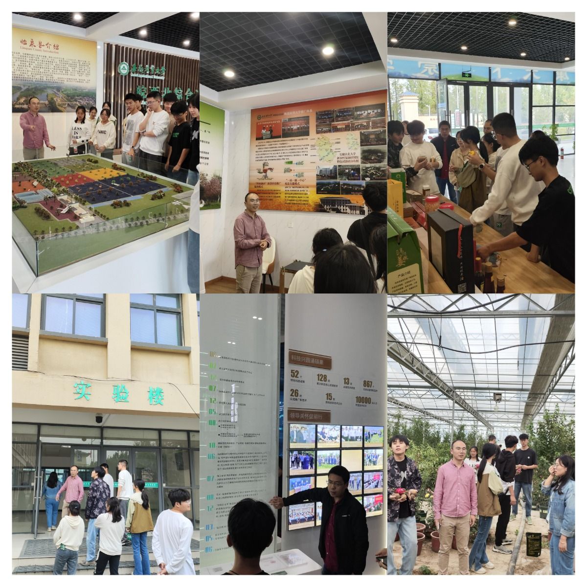 在皖西北综合试验站,指导老师带领学生们参观一楼展厅,了解临泉县的特色农产品、试验站的成立历程以等。随后,带领大家参观了新建成的实验楼,认识在楼内从事实验研究的研究生,介绍了他们所从事的实验工作和相关知识,使实践团队对皖西北综合试验站及站内学习、生活有全面的了解。