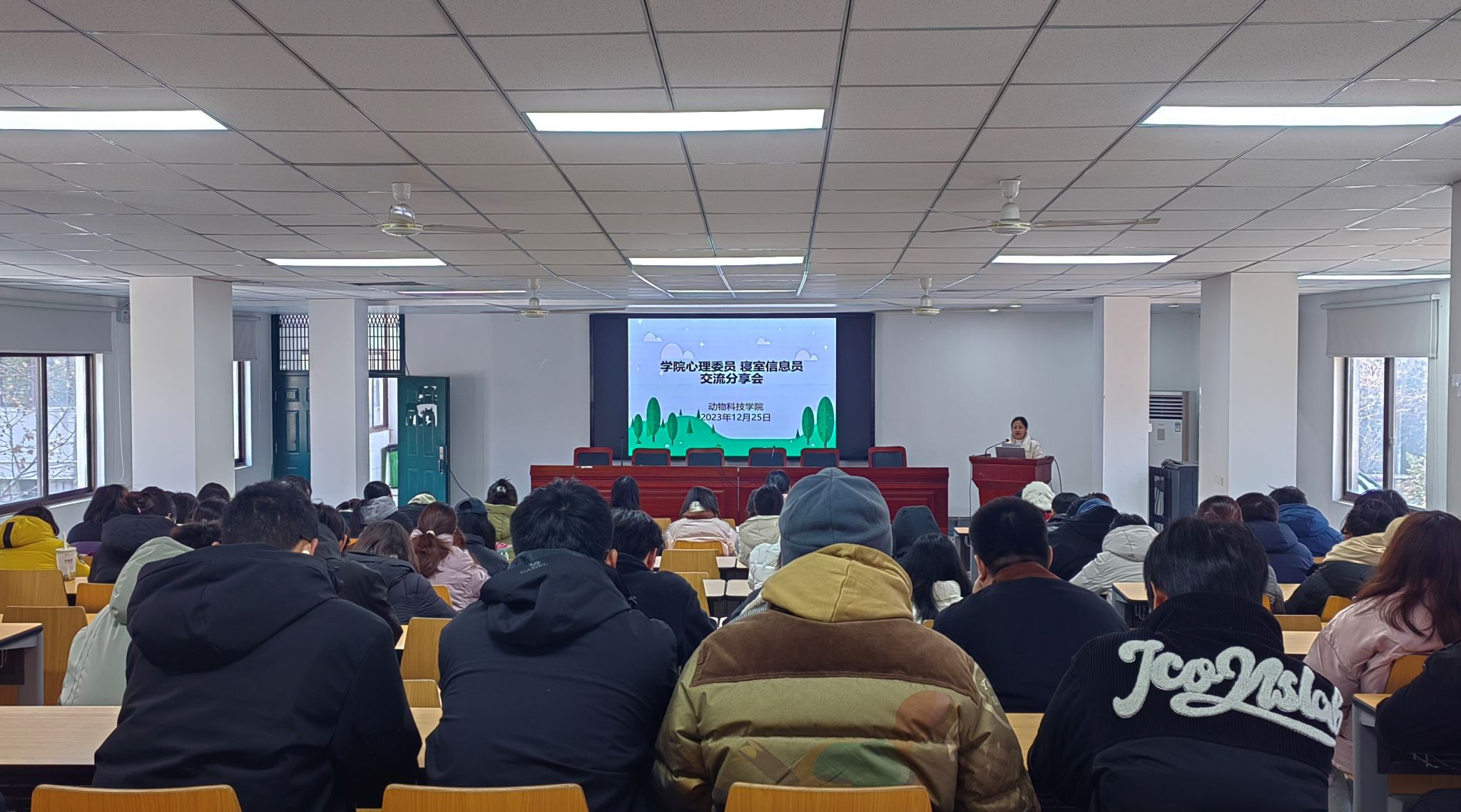 本网讯 12月25日,为进一步提高新生班级心理委员的工作能力,发挥心理委员、寝室心理信息员在大学生心理健康中的重要作用,学院在动科楼318室开展班级心理委员、寝室心理信息员分享交流会。2020级心理委员、2022级心理委员和寝室心理信息员共同参加。交流会由学院心理联络员郭佳主持。