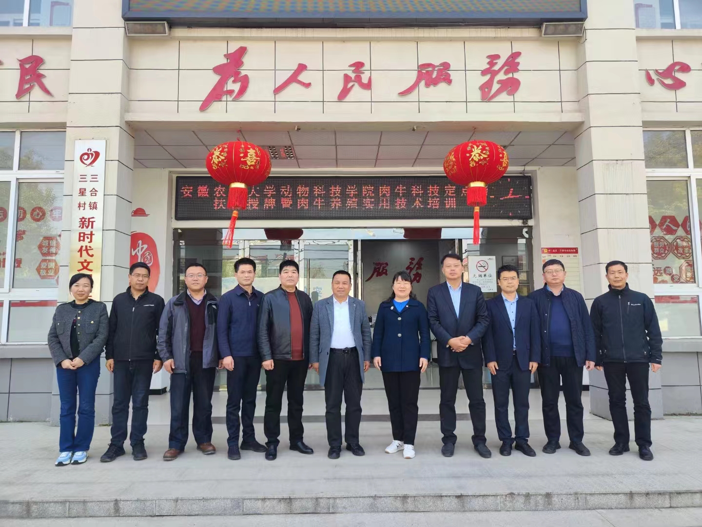 本网讯 3月22-23日,安徽农业大学动物科技学院组织学院及肉牛产业研究院技术服务团队奔赴阜阳市颍州区三合镇三星村开展肉牛养殖实用技术培训并授牌。学院党委书记沈兆梅、院长张子军、党委副书记章巍、副院长凌英会,肉牛产业研究院院长张运海及颍州区农业农村局、三合镇党委、三星村村委相关负责人出席授牌仪式。