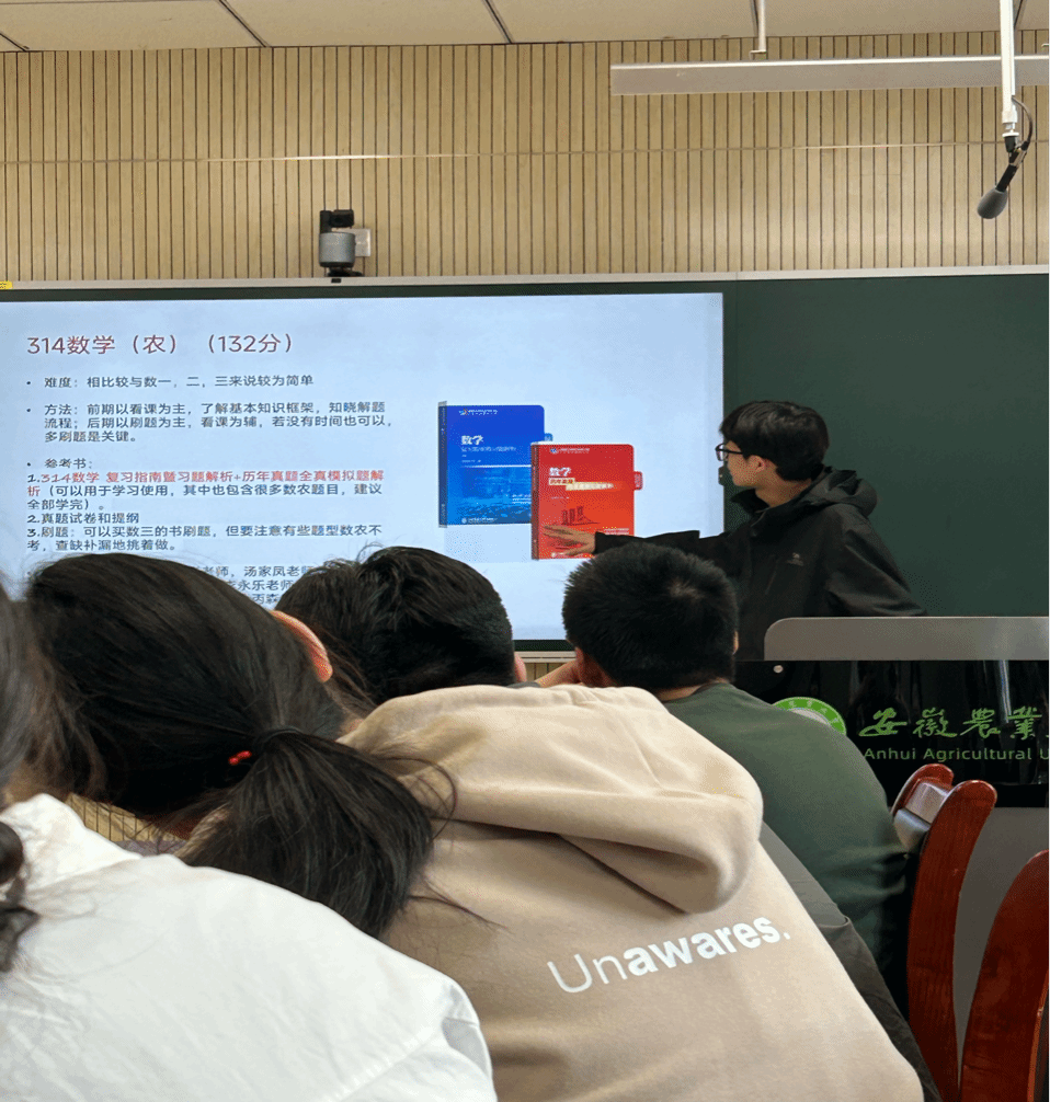 本网讯 4月20日中午,2021级水产养殖学辅导员邀请2020级水产养殖学马慧影、罗招源、何毅伟三名同学在动科院306会议室向2021级水产养殖学班全体同学分享考研经验。