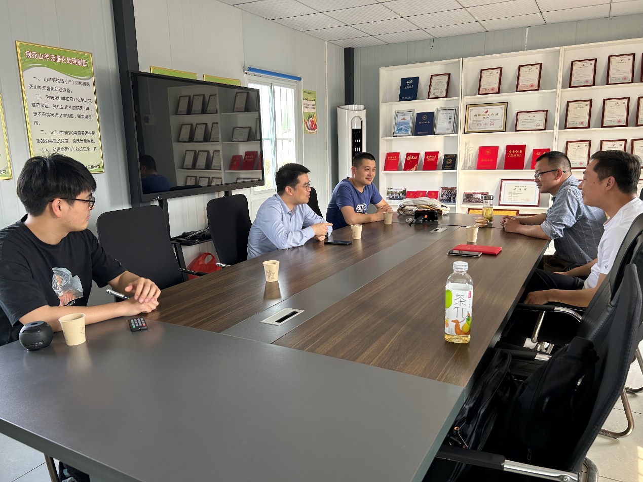 在座谈交流中,凌英会教授与驻场实习生交流了实习内容和后续安排,分享了一些心得和体会。与企业负责人就山羊新品系培育、人才培养、技术创新等问题展开了深入探讨。公司领导对驻场实习学生的实践能力和吃苦耐劳品质给予了高度评价,并表示愿意与学院进一步加强产学研方面的合作,共同培养更多高素质的畜牧人才,提供就业岗位。