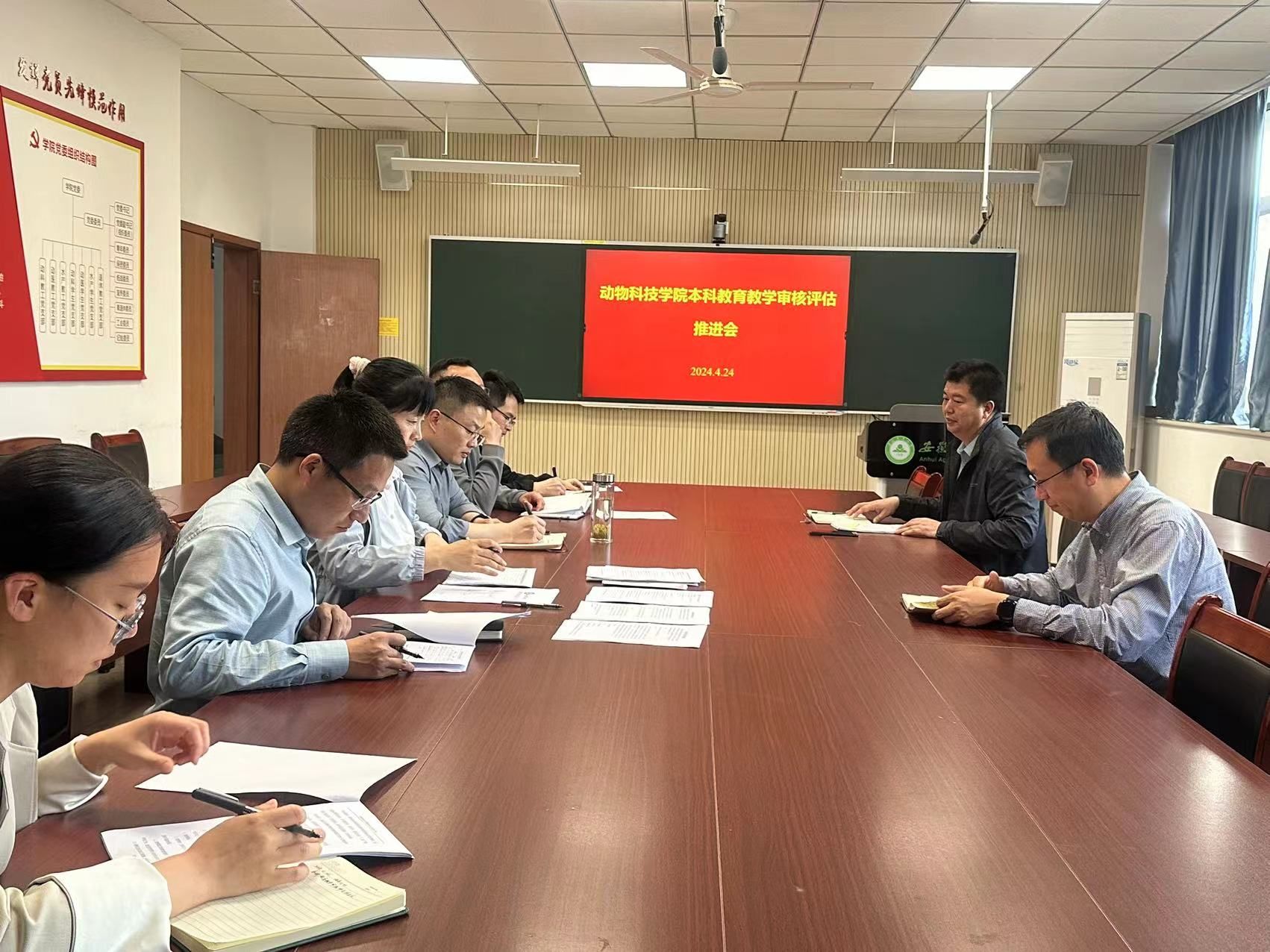 本网讯 4月24日下午,动物科技学院在306会议室召开系主任会议,研究深入推进本科教育教学审核评估和人才培养方案修订工作,会议由学院副院长王希春主持。