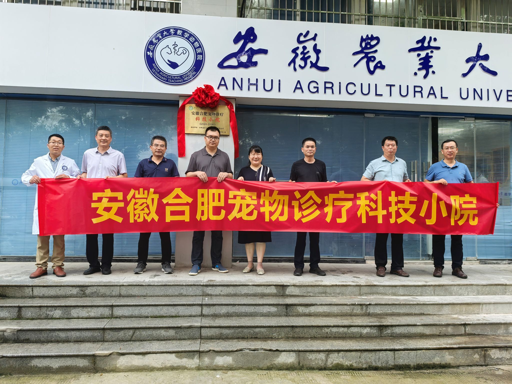 本网讯: 6月21日,安徽合肥宠物诊疗科技小院在合肥安农大教学动物医院有限公司举行。安徽农业大学研究生院副院长姚辰松,安徽农业大学资产经营有限公司总经理姚兴贵、副总经理徐传军,学院党政班子,安徽合肥宠物诊疗科技小院负责人等参加揭牌仪式。