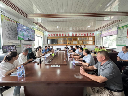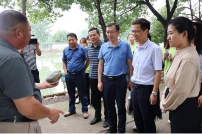随后,与会领导一行实地观摩了甲鱼新品种“珠水1号”的本土化养殖情况。现场,甲鱼养殖基地内生机勃勃,新品种甲鱼长势良好,展现了科技小院在推动甲鱼产业健康发展方面的显著成效。