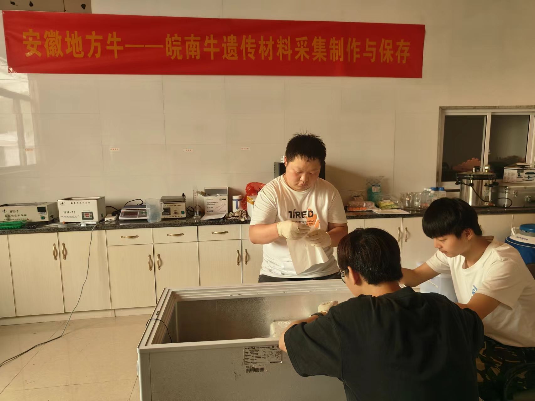 2024年安徽农业大学动物科技学院动物繁育团队接受安徽省农业农村厅的任务安排,承担开展皖南牛冷冻精液制作保存工作。动物繁育团队迅速行动,派遣相关领域专家和技术力量到旌德县虎威黄山黄牛养殖农民专业合作社,对初选的种公牛进行长时间的人畜亲和驯化以及采精调教,经过不懈努力,先后成功采集到精液并进行冷冻保存。