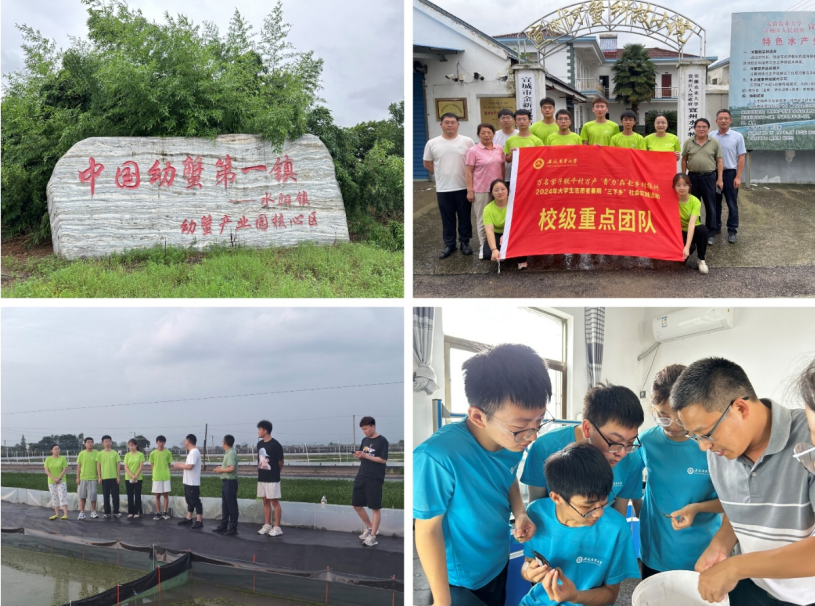 走进中国幼蟹第一镇,科技创新助力河蟹产业发展宣城市宣州区。水阳镇,被誉为“中国幼蟹第一镇”。宣城市金新河蟹苗种专业合作社是国家级农民合作示范社,依托合作社建设有宣州水产特色试验站、宣州河蟹科技小院等产学研平台。在指导老师的带领下,实践团队参观了试验站和科技小院,了解运行情况。合作社负责人葛其寿介绍了试验基地成蟹塘和幼蟹塘的养殖情况,团队成员对河蟹的实际养殖现状有了进一步的直观了解。