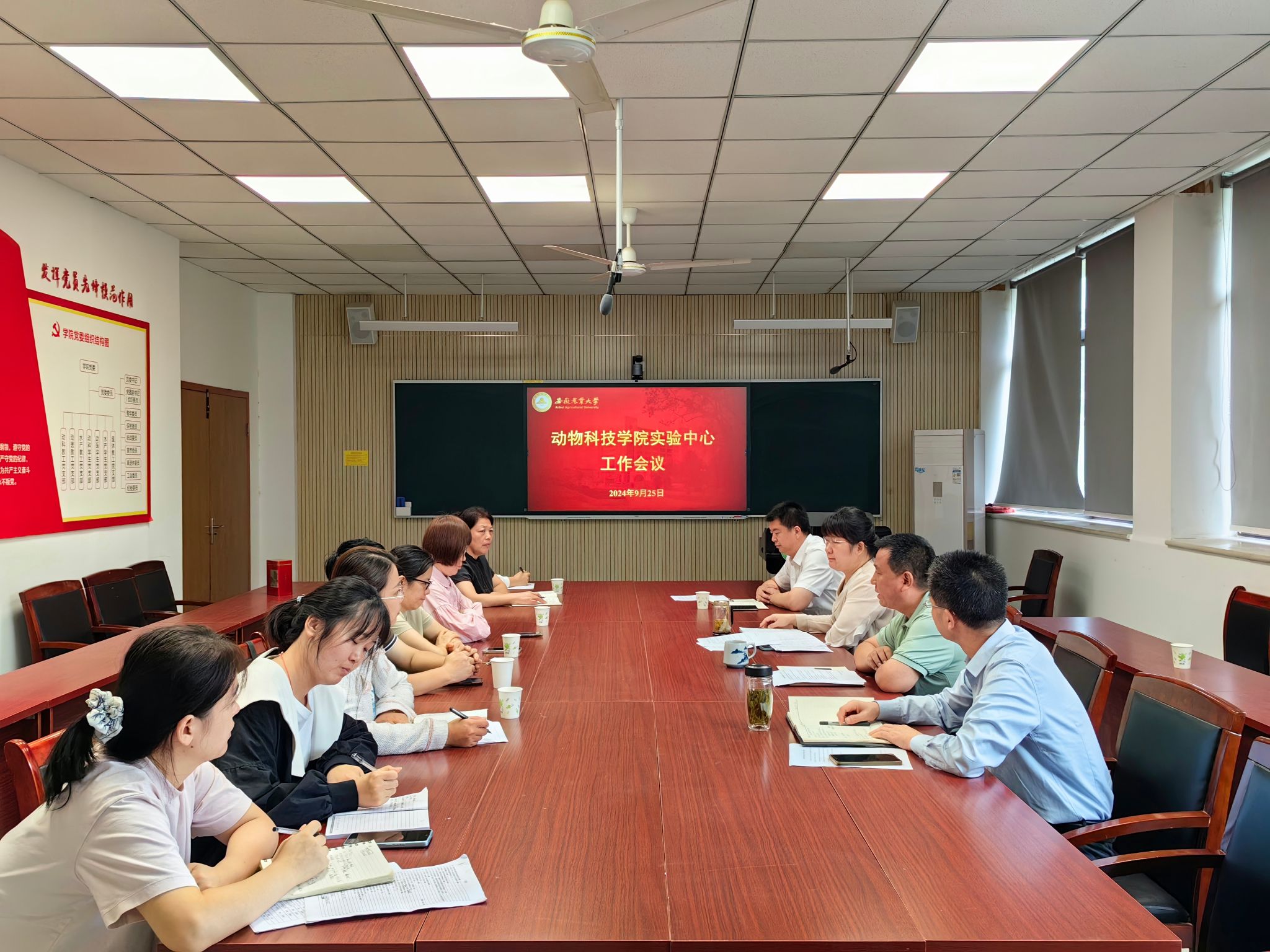 会议围绕本科教学实验室升级改造展开。王希春宣读了《动物科技学院实验中心工作职责》、《动物科技学院实验中心工作细则》和《动物科技学院实验室管理制度》等文件,他强调本次升级改造实验室的相关责任人要督促施工单位按时完成改造工程,确保实验课程的顺利开展,同时也要做好国有资产的清点、核对和报废工作。党委副书记章巍指出,在实验室升级改造中要落实责任,做好国有资产的管理工作。院长张子军强调,要落实实验中心各项规章制度,实验中心教师要主动融入学院各教学科研团队,在做好本职工作的同时也要积极参与学院其他工作。
