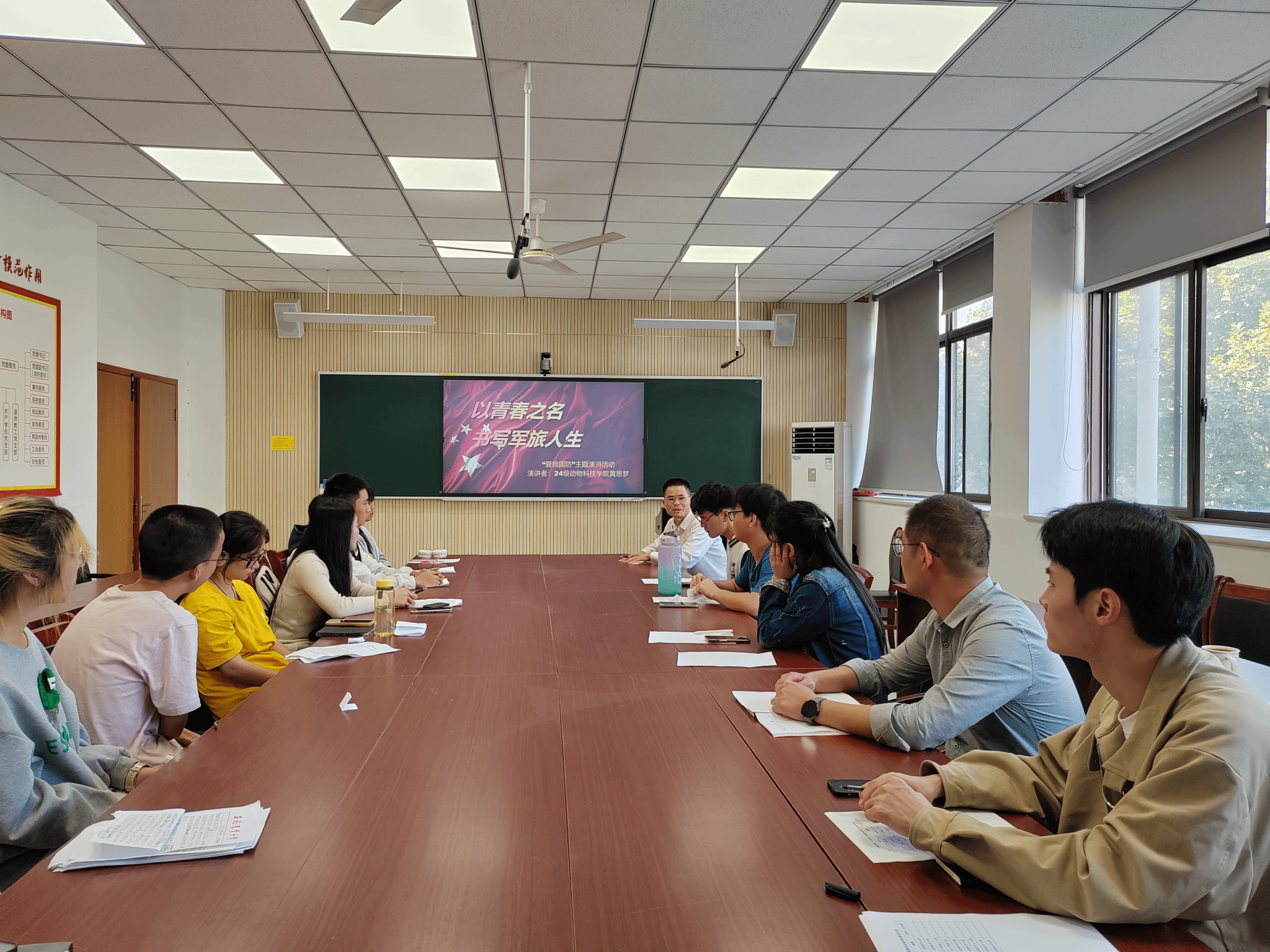 本网讯 10月9日,动物科技学院在动科楼306会议室举办“爱我国防”大学生主题演讲比赛院级初赛。比赛由学院党委副书记章巍主持。