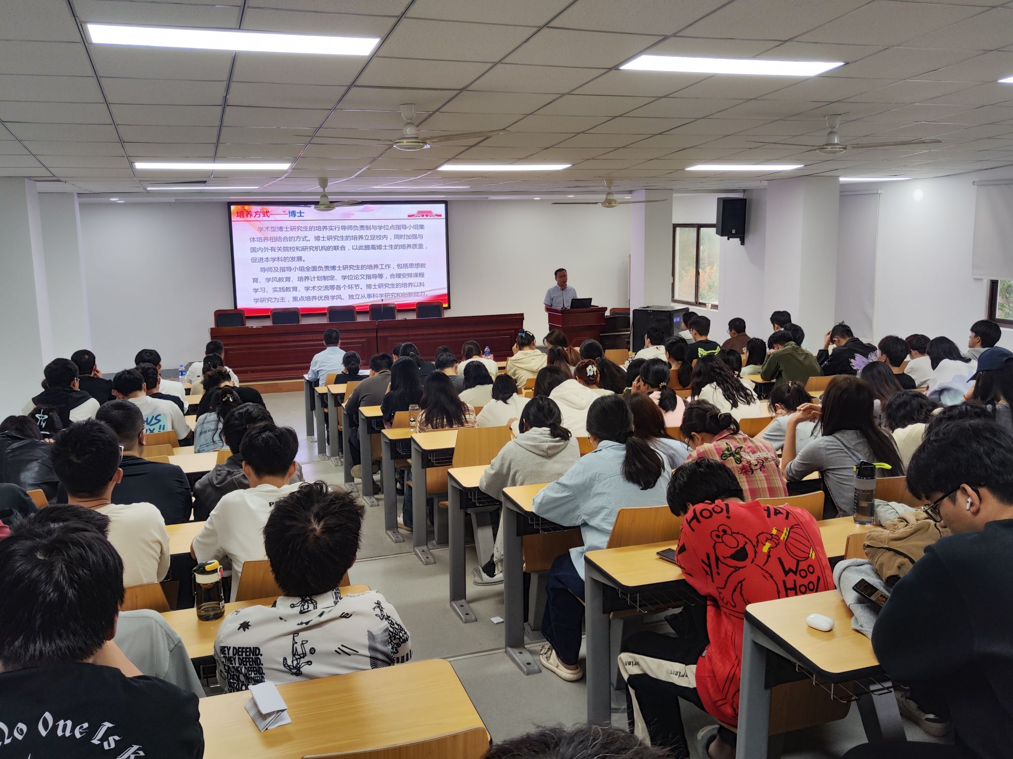 沈兆梅结合学生实例,希望学生们首先要学习做人做事,树立合作意识、大局意识,同学之间要相互尊重、待人真诚。同时提醒大家要及时认清就业形势,科学做好职业规划,不断坚定理想信念,扣好研究生阶段的“第一粒扣子”。