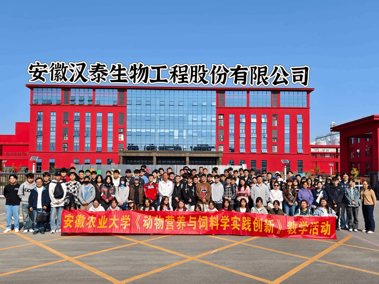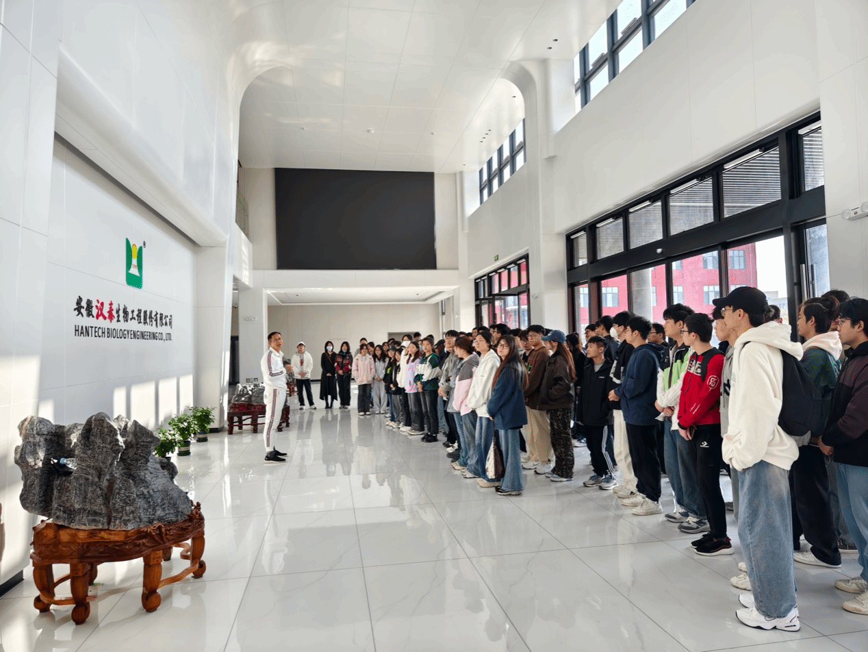 校外活动以企业参观为主。11月5日,陈丽娟、卓钊老师带队前往安徽汉泰生物工程股份有限公司,参观公司在六安新建成的占地近200亩新厂区。程茂基董事长亲自带领学生走进公司文化长廊,介绍公司的发展历程和发酵饲料五豆乳等产品,并实地参观公司的生产厂房,包括亚洲最大的单体发酵罐、年产20万吨生物发酵饲料的现代化生产线、钢筋森林一般的500立方大规模发酵罐、高标准的储粮仓等先进设施。本次参观激发了学生对生物发酵饲料产业的浓厚兴趣。