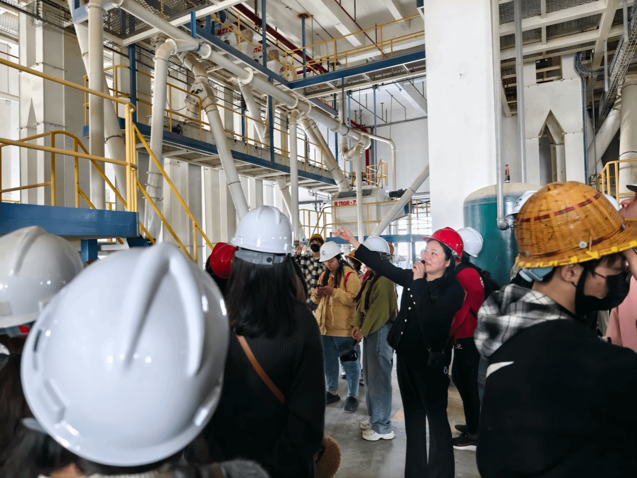 11月7日,丁小玲、张成和卓钊老师带队前往淮南海大生物饲料有限公司。在公司领导的支持下,学生们佩戴安全帽进入饲料生产厂房,丁小玲老师按照生产线设备顺序,详细讲解了现代饲料生产的全过程,包括原料接收、粉碎、配料、混合、制粒、挤压膨化、包装运输等环节,帮助学生们将课堂理论与实际生产相结合,深化了对学生们饲料生产过程的理解。