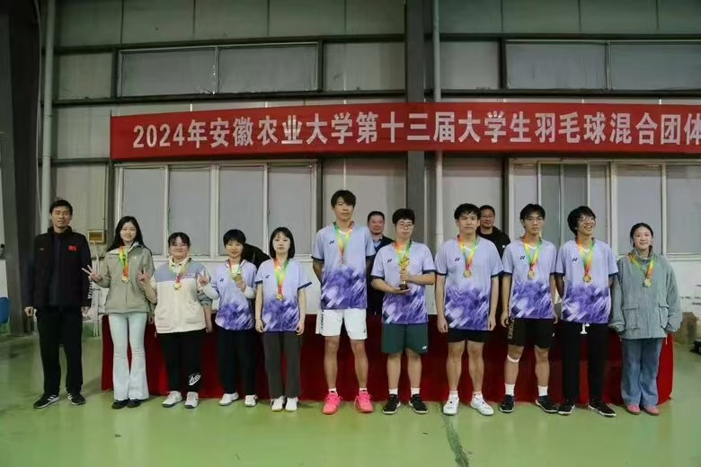 本网讯 11月24日,2024年安徽农业大学第十三届大学生羽毛球比赛圆满落幕,在为期2天的赛程里,学院代表队在与13支队伍的层层角逐中一路过关斩将,荣获“2024年安徽农业大学第十三届大学生羽毛球比赛”冠军的好成绩。