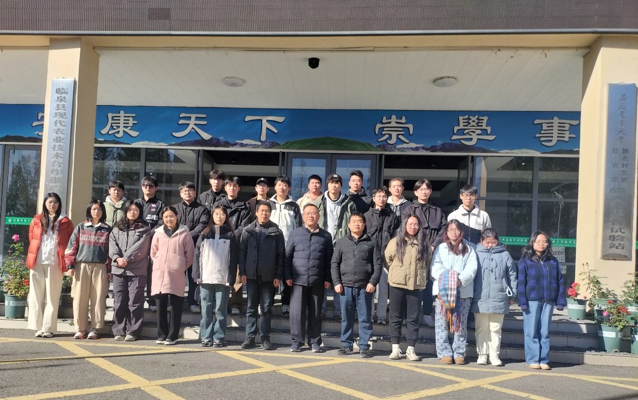 在教师刘洪瑜带领下,前往皖西北综合试验站进行实践创新。在皖西北综合实验站,试验站站长张运海教授及试验站工作人员热情接待大家,刘洪瑜副教授介绍了皖西北综合试验站的定位与发展历程。随后,试验站工作人员带领同学们参观临泉国家农业科技园区,为同学们讲解科技园区的科研成果,特别是依托安徽农业大学培育的我国培育的一个肉用白山羊品种——皖临白山羊。