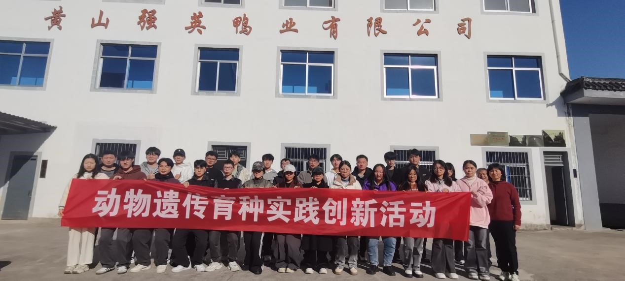 在陈兴勇教授带领,前往黄山强英鸭业有限公司海宁育种场开展禽遗传与育种课程实习。黄山强英鸭业有限公司的负责人为师生们讲述公司的战略发展和育种体系;并且带领学生们参观孵化室,了解强英鸭从孵化到成鸭的精细化育种过程和现代化的农业设施。随后在负责人的带领下前往育种场进行参观学习。企业负责人向同学们详细介绍不同品系强英鸭的特征。整齐划一的鸭舍、宽敞舒适的生活空间和优质丰富的饲料确保鸭子在最佳的环境中茁壮生长。
