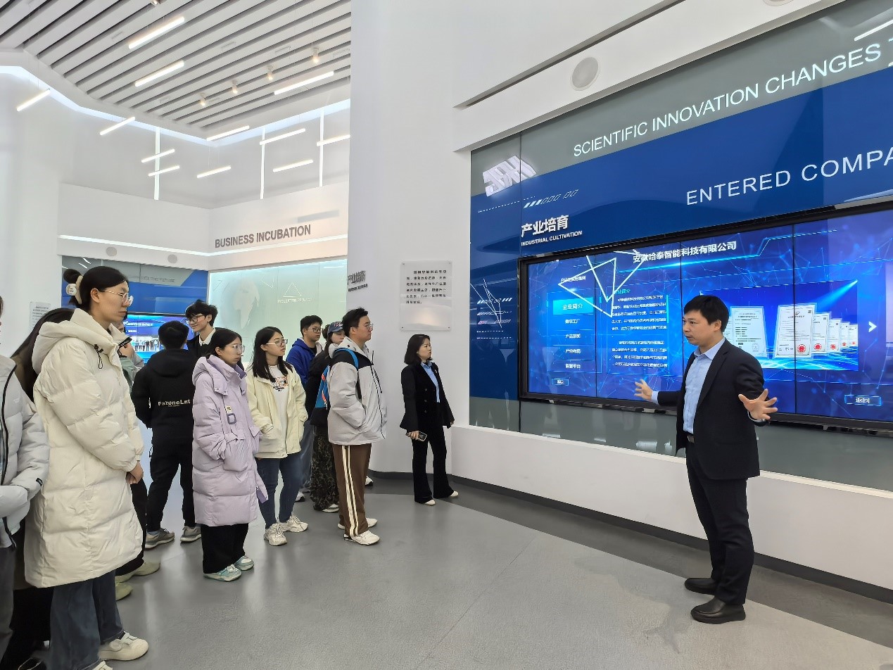 在张晓东教授的带领下,前往智能科技园开展猪遗传与育种课程实习。安徽哈泰智能科技有限公司的负责人为师生们讲述公司与研究院的研发成果、科技创新、战略规划等;并且带领学生们参观各种科技成果。哈泰智能科技有限公司是一家专注于智慧畜牧、数智农业等方面应用与研发,研发智慧畜牧相关软硬件产品及整体解决方案。公司产品线涵盖动物识别系统、多功能牧场机器人,以及用于农场测温、消毒和巡检的机器人技术。