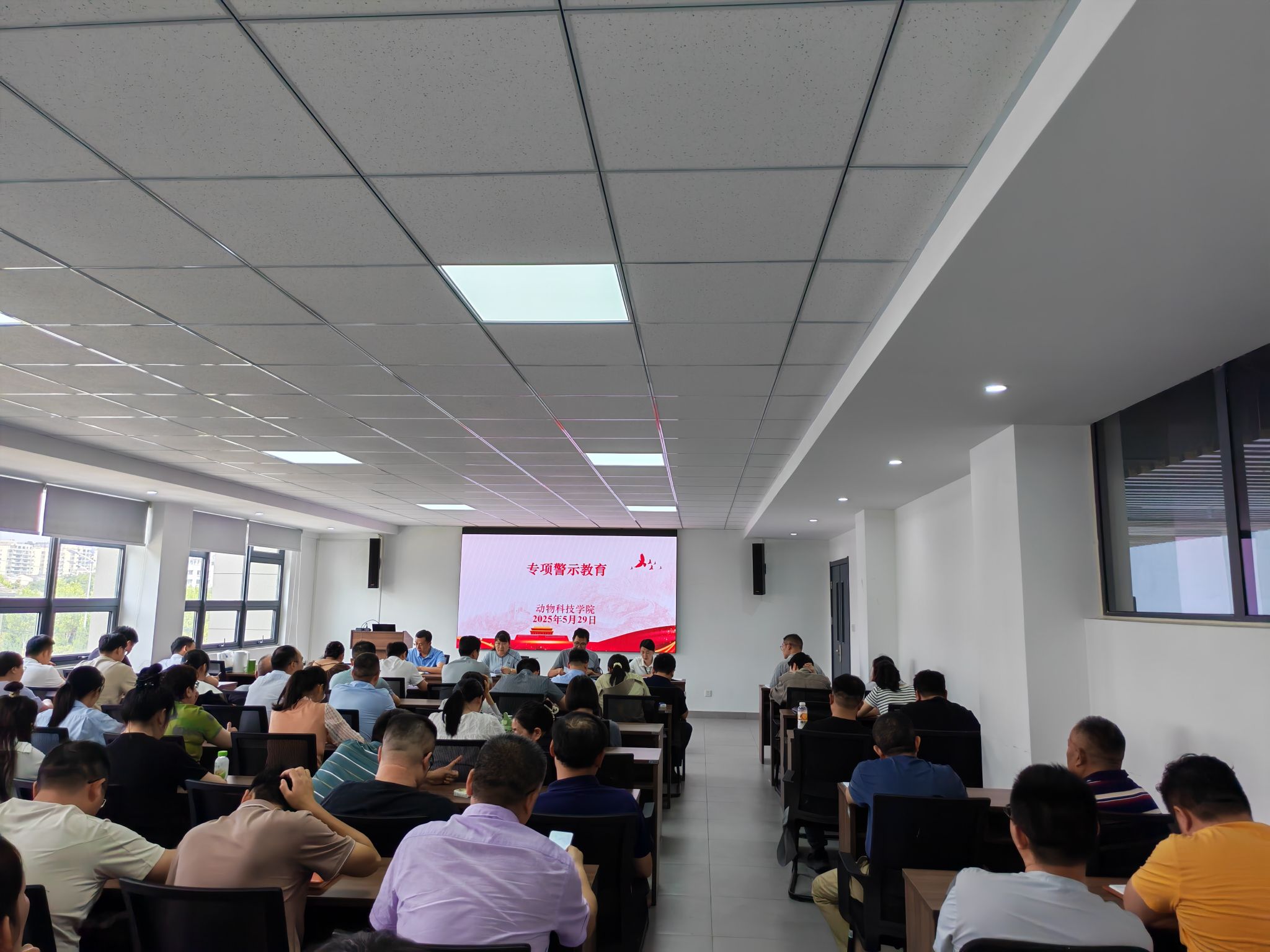 本网讯 5月29日下午,学院在国家(中部地区)畜禽遗传资源基因库316会议室召开全体教职工大会暨深入贯彻落实中央八项规定精神专项警示教育。学院领导班子及全体教职工出席会议,会议由学院党委书记沈兆梅主持。