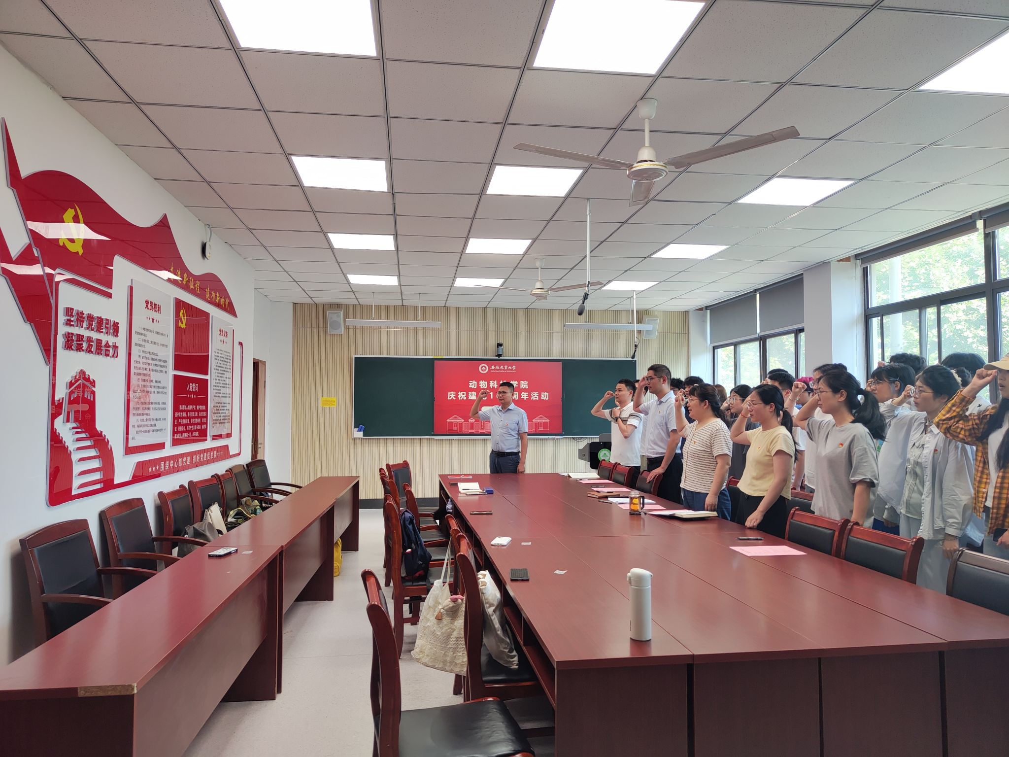 本网讯 7月1日上午,动物科技学院在306会议室举行“传承红色基因,凝聚奋进力量” 迎“七一”系列党建活动。学院党委书记沈兆梅,党委副书记卢伟,学生党支部书记、优秀学生党员代表、新发展党员等参加了活动。活动由学院党委副书记卢伟主持。