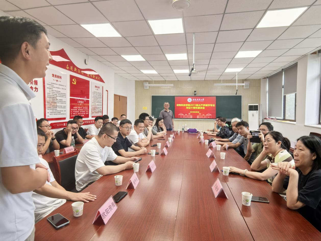 昔日同窗欢聚一堂,2011级学子深情回顾了求学岁月,并逐一分享了毕业十年来在各自工作岗位上的奋斗历程和取得的成就,言语间洋溢着对母校的感恩与对水产业的热爱。水产系主任张云龙向毕业生们全面介绍了十年来学院及水产系在学科建设、人才培养、科研成果与社会服务等方面取得的成就,希望毕业生依托母校资源助力职业生涯迈上新的台阶,不断加强与母校联系。万全等教师代表深情寄语毕业生,充分肯定了大家扎根行业、服务社会所取得的成绩,并勉励大家不忘初心、持续奋进,勇担时代使命,健康、快乐生活,为社会发展贡献更大力量。