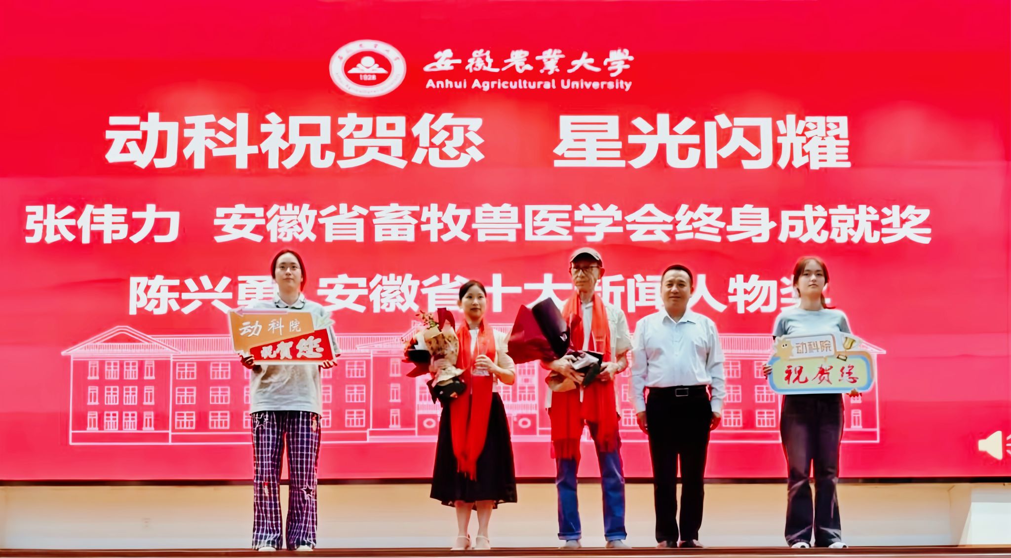 大会举行了新生佩戴校徽仪式和“动科欢迎您”介绍新进教师、“动科感谢您”向荣休教师致敬、“动科祝贺您”对2025年国家自然科学基金立项教师、优秀辅导员、安徽省畜牧兽医学会终身成就奖获得者及安徽省十大新闻人物进行表彰等一系列教师节庆祝活动。辅导员代表姜鹏、本科新生代表罗静雅、研究生代表刘彦哲分别作交流发言。(文:许漩 图:侯坤 预审:许漩 初审:卢伟 终审:沈兆梅)
