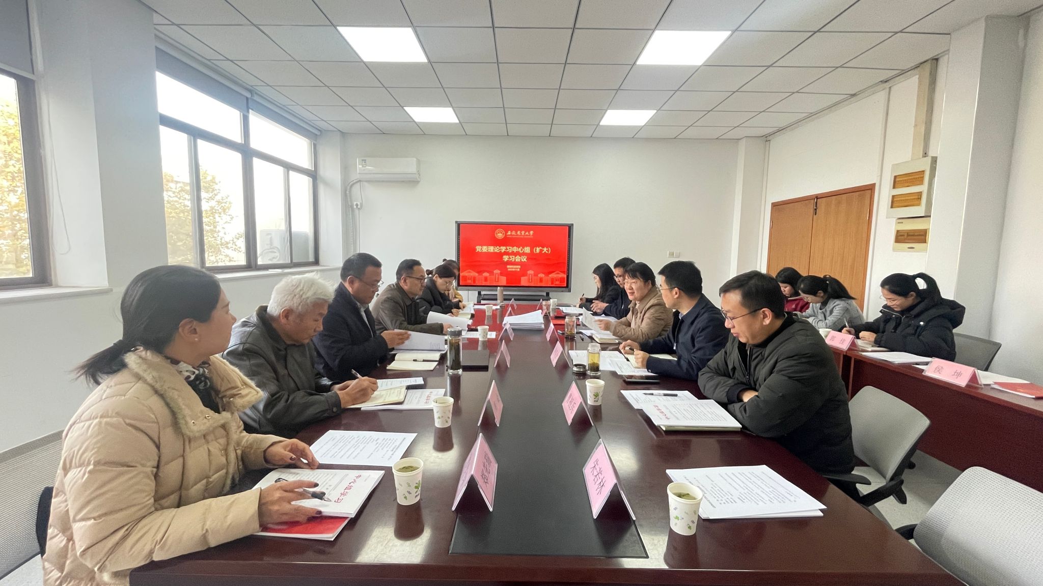 本网讯 11月27日下午,学院在动科楼308会议室召开党委理论学习中心组(扩大)学习会。乡村振兴学院党总支书记、副院长张晓伟等列席旁听,学院党委委员、支部书记参加会议。会议由学院党委书记沈兆梅主持。