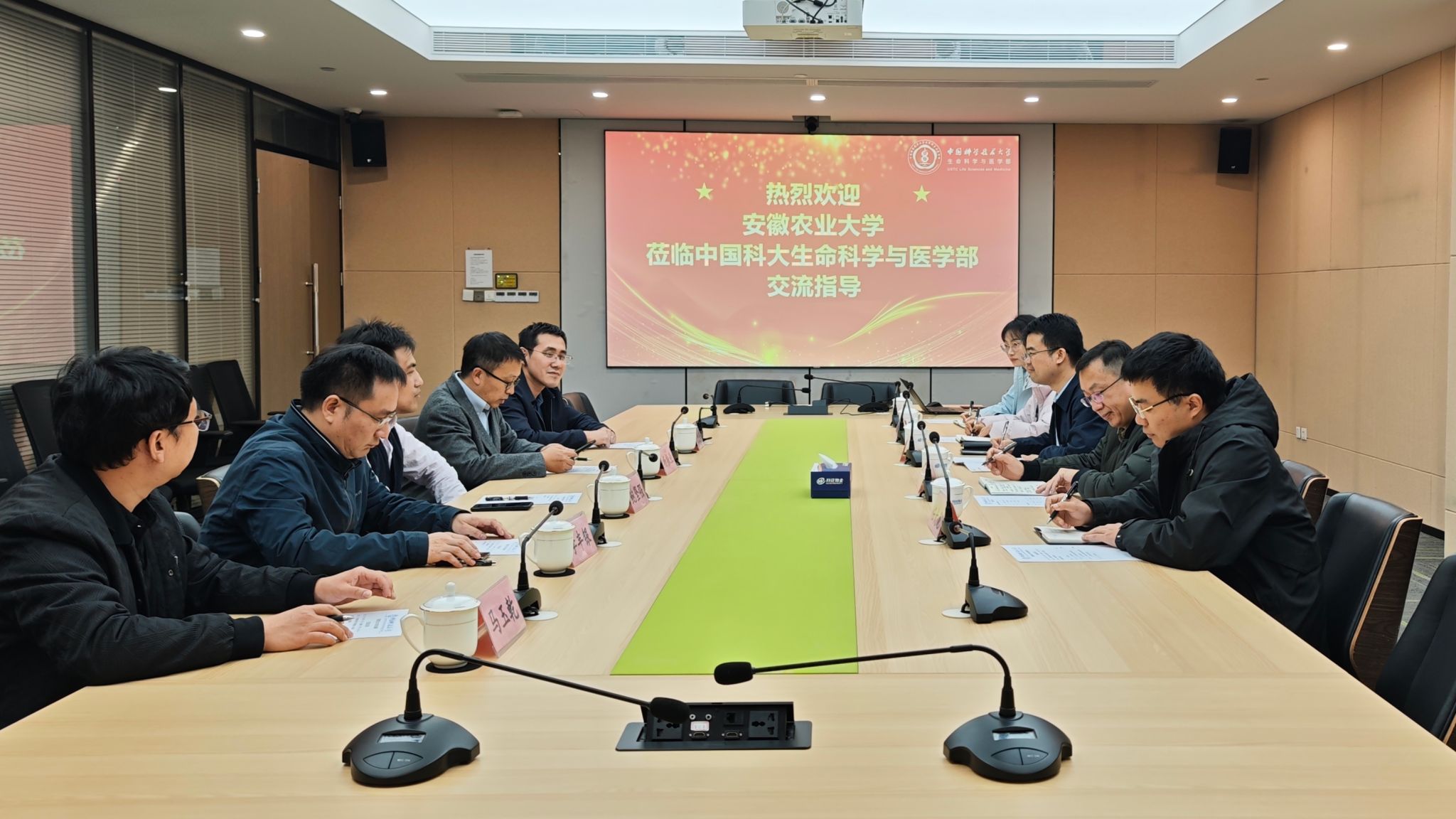 本网讯 2025年12月1日,学院副院长(主持工作)凌英会、副院长曹祖兵率学院教师任大龙、郑先瑞、谷爽一行,前往中国科学技术大学生命科学与医学部进行学术交流与调研。中国科学技术大学基础医学院副院长杨振业教授、鲍坚强教授、李丰银教授、高大兴教授以及生命科学学院马玉乾教授共同参加了本次座谈。
