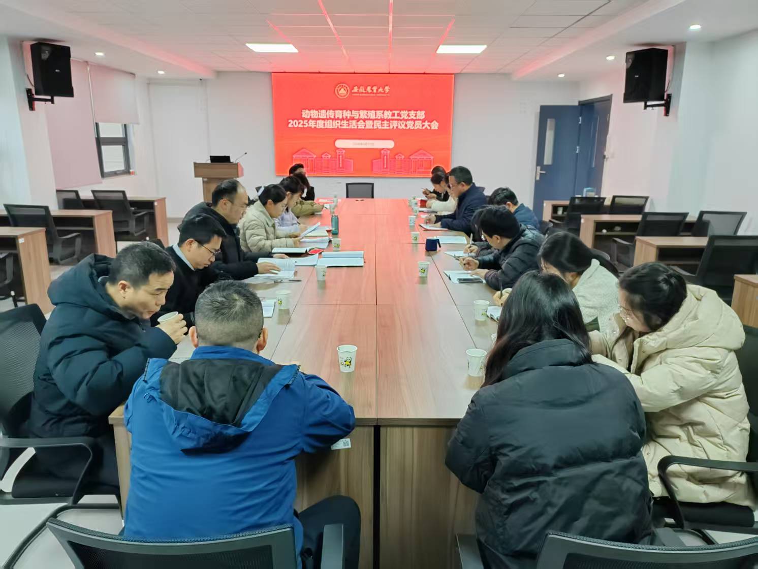 本网讯 3月11日下午,院动物遗传育种与繁殖系教工党支部在基因库323会议室召开2025年度组织生活会暨民主评议党员大会。学院党委书记沈兆梅到会指导,支部全体教工党员参加会议。