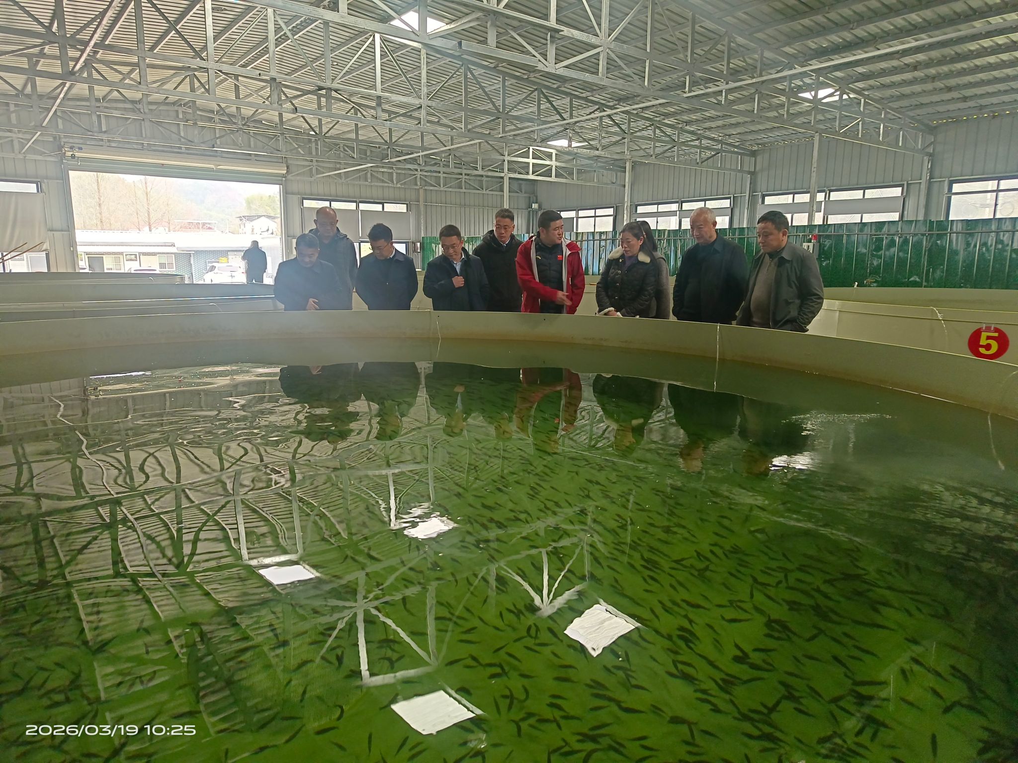 本网讯 3月19日,江淮粮仓研究院(安徽“1+5”联盟秘书处)副院长兼办公室主任谈应权、动物科技学院副院长(主持工作)凌英会、动物科技学院水产系副教授苏时萍一行赴池州市,为溪农生态水产养殖公司“鳜鱼产业创新基地”揭牌。池州市、石台县农业农村部门相关领导参加活动。