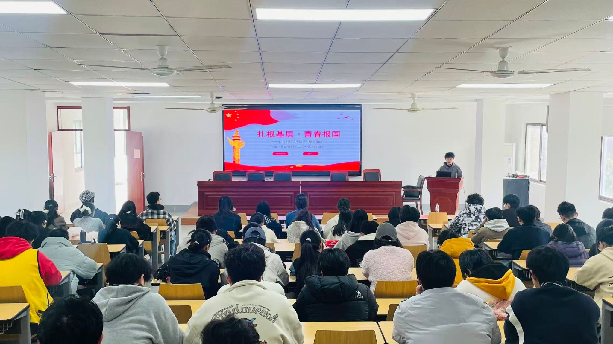 本网讯 3月21日,学院举办政策性就业专题宣讲会。学院党委副书记卢伟,专职辅导员郭佳、李文杰、侯坤,退役士兵代表经济管理学院2023级农林经济管理专业夏继、动物医学院2023级动物医学专业杨浩宇、茶叶学院2025级茶学专业陆文卓等参加了活动,学院2022、2023、2024级全体本科生及研究生参会。