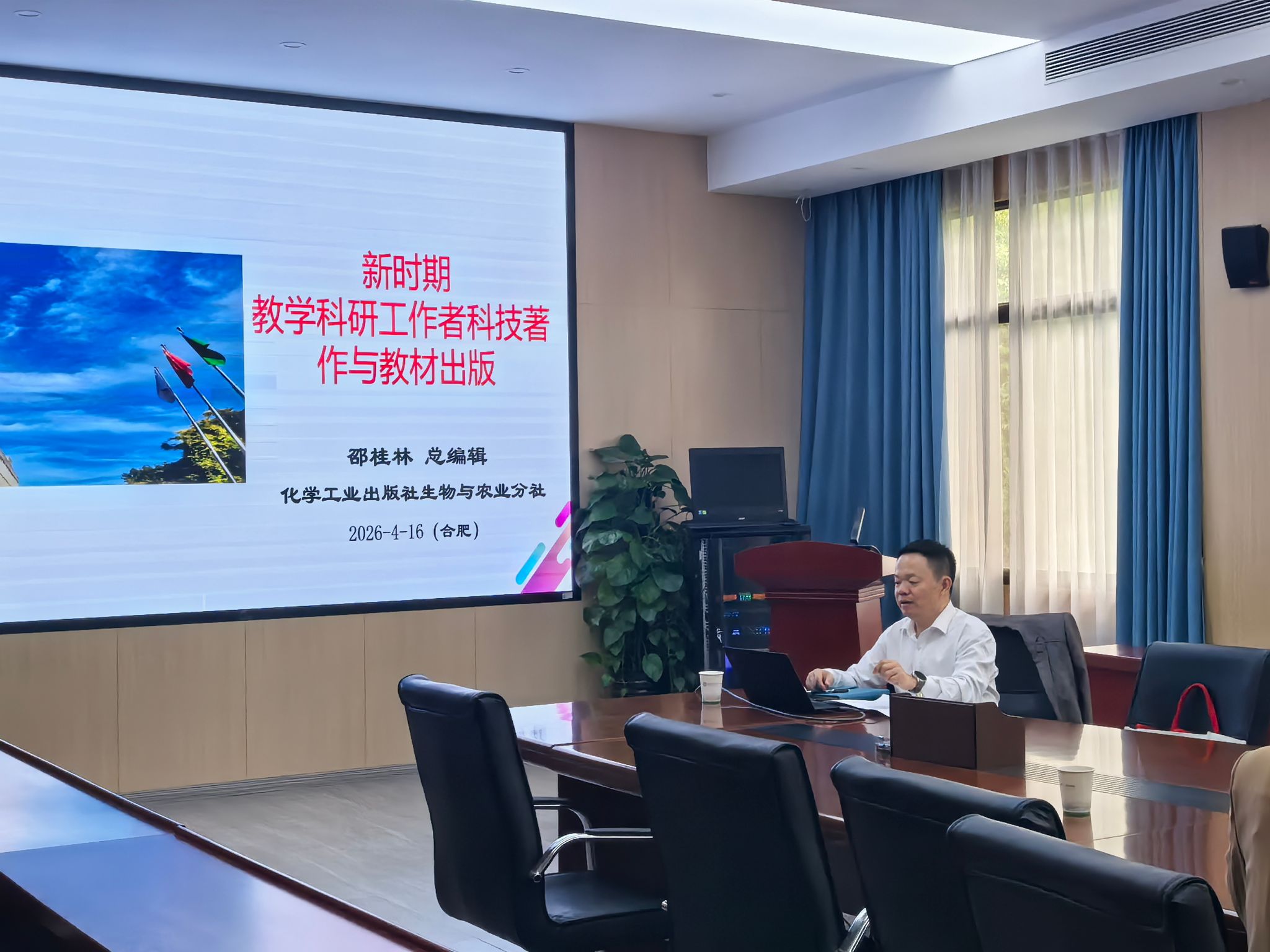 本网讯 4月16日上午,动物科技学院与园艺学院在第二教学楼326室联合举办“教师能力提升专题报告会”,聚焦教材出版相关实务。本次报告会特邀化学工业出版社生物与农业出版分社总编辑邵桂林担任主讲,两院教师共同参加。