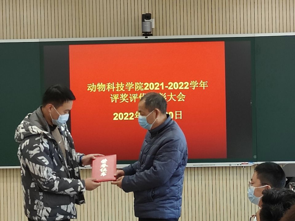 会上,主持人宣读了学院2021-2022学年国家奖学金、专业特等奖学金、学生先进个人名单,并对以上获奖人员表示热烈祝贺,曹俊为获得表彰的学生代表颁奖。