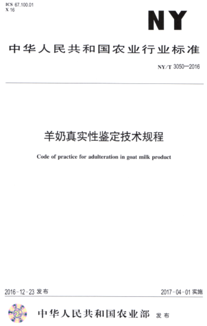 农业行业标准NY/T 3050-2016《羊奶真实性鉴定技术规程》按照《农业部办公厅关于开展羊奶质量安全风险评估和与牛奶差异性比较研究的函》(农办质函〔2012〕15号)应急要求,项目组积极开展了羊奶、牛奶、水牛奶等相互掺假检测技术研发,取得的创新点如下:一是开发了基于DNA技术的聚合酶链式反应方法、基于蛋白分离技术的二维凝胶电泳法及具有快检优势的酶联免疫吸附法等三种检测方法,此三种方法是对生羊奶、超高温灭菌羊奶和羊奶粉中掺入牛源性奶成分的定性检测方法。二是采用乳化剂和缓冲液的方式得到较纯净的体细胞,DNA浓度损失较少,采用酚仿抽提两次的方法去除DNA中残留蛋白。该标准的实施,有效杜绝了羊奶中掺假牛奶的现象,保障了羊奶产业的健康发展。