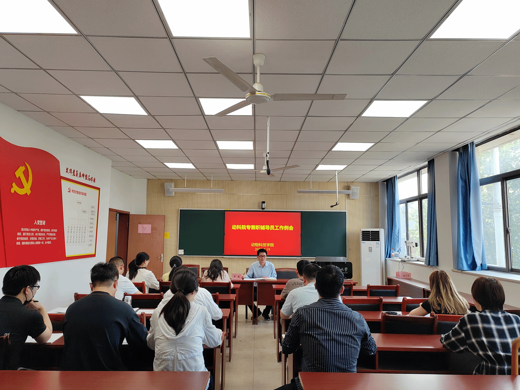 本网讯 4月19日下午,学院在306会议室召开专兼职辅导员工作例会,全体专兼职辅导员参加,会议由学院党委副书记章巍主持。