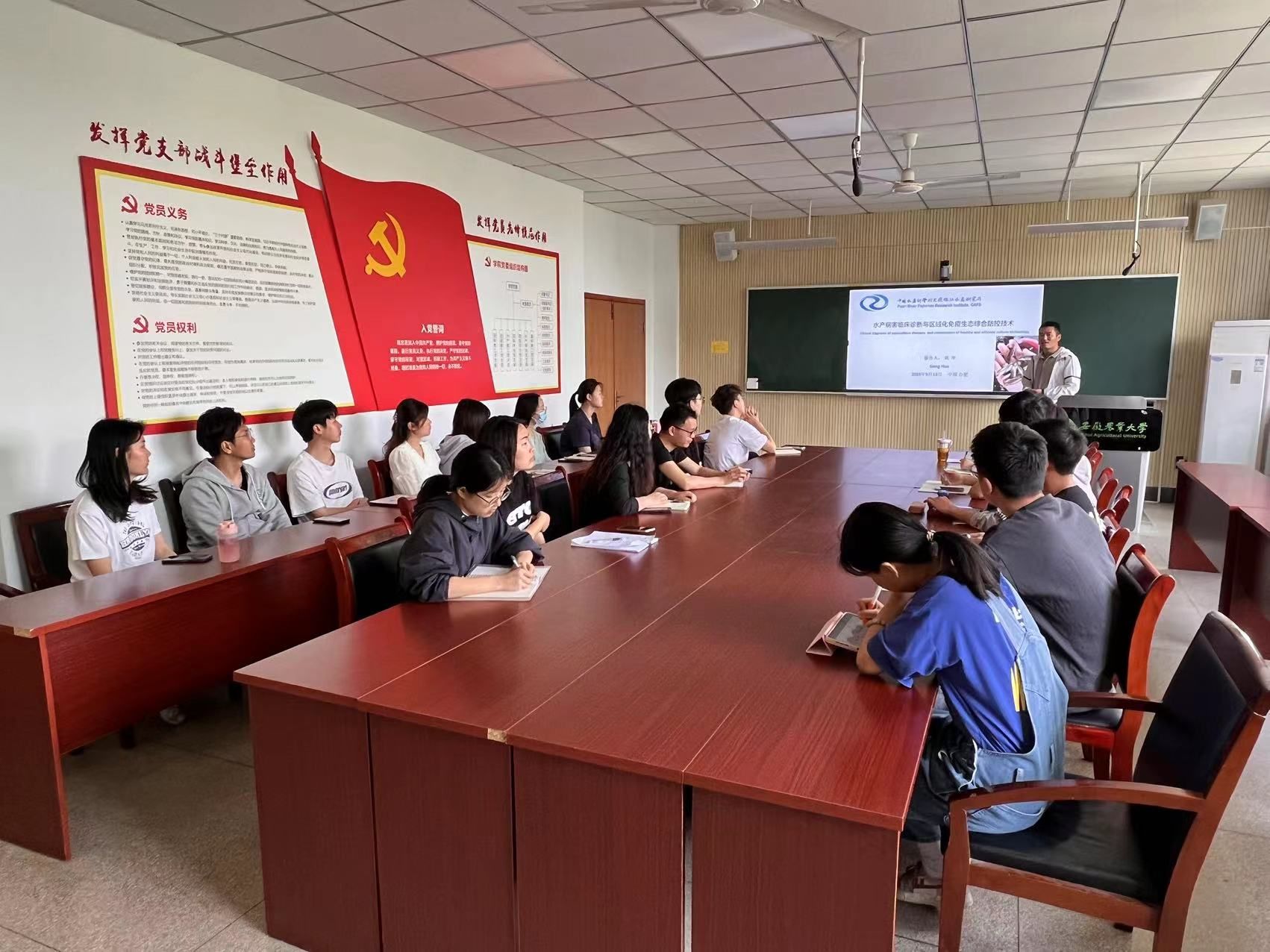 此次讲座,巩华以幽默风趣的语言为研究生们系统全面地讲述了水产病害临床诊断、水产疫苗使用现状和研究进展、水质调控及现代化工厂化水产养殖技术等知识,兼具理论性和实践性,学生们均表示受益匪浅。