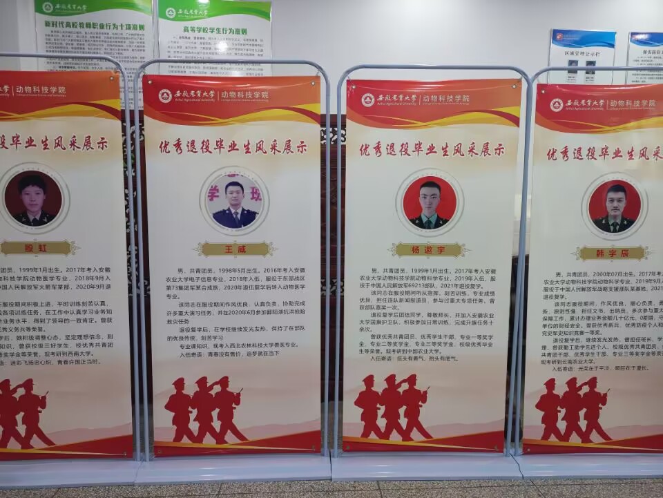 榜样宣传强动力。为充分发挥优秀退役士兵的榜样作用,学院广泛征集了2019级优秀退役毕业生的先进事迹,并制作成展板在学院门口进行展示。本次优秀事迹展示活动加强了同学们对部队军事、科技素质建设的认识,促进了学生从成长成才的角度来认识大学生入伍的重要意义。
