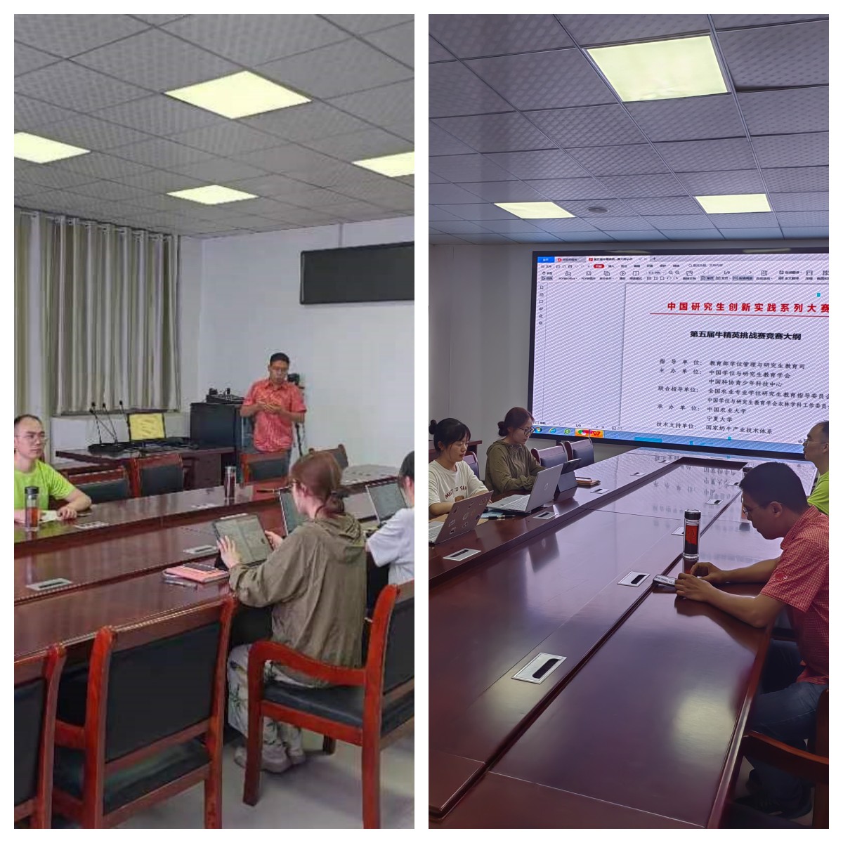 7月9日,指导教师及研究生一行来到皖西北综合试验站,开展理论学习,召开讨论会研究部署工作内容。刘洪瑜给研究生们解读了牛精英挑战赛的大纲,要求同学们一定要深入生产一线,熟悉生产细节,将理论知识与生产实践密切结合起来,为肉牛生产技术水平提升提出有效的意见与建议。
