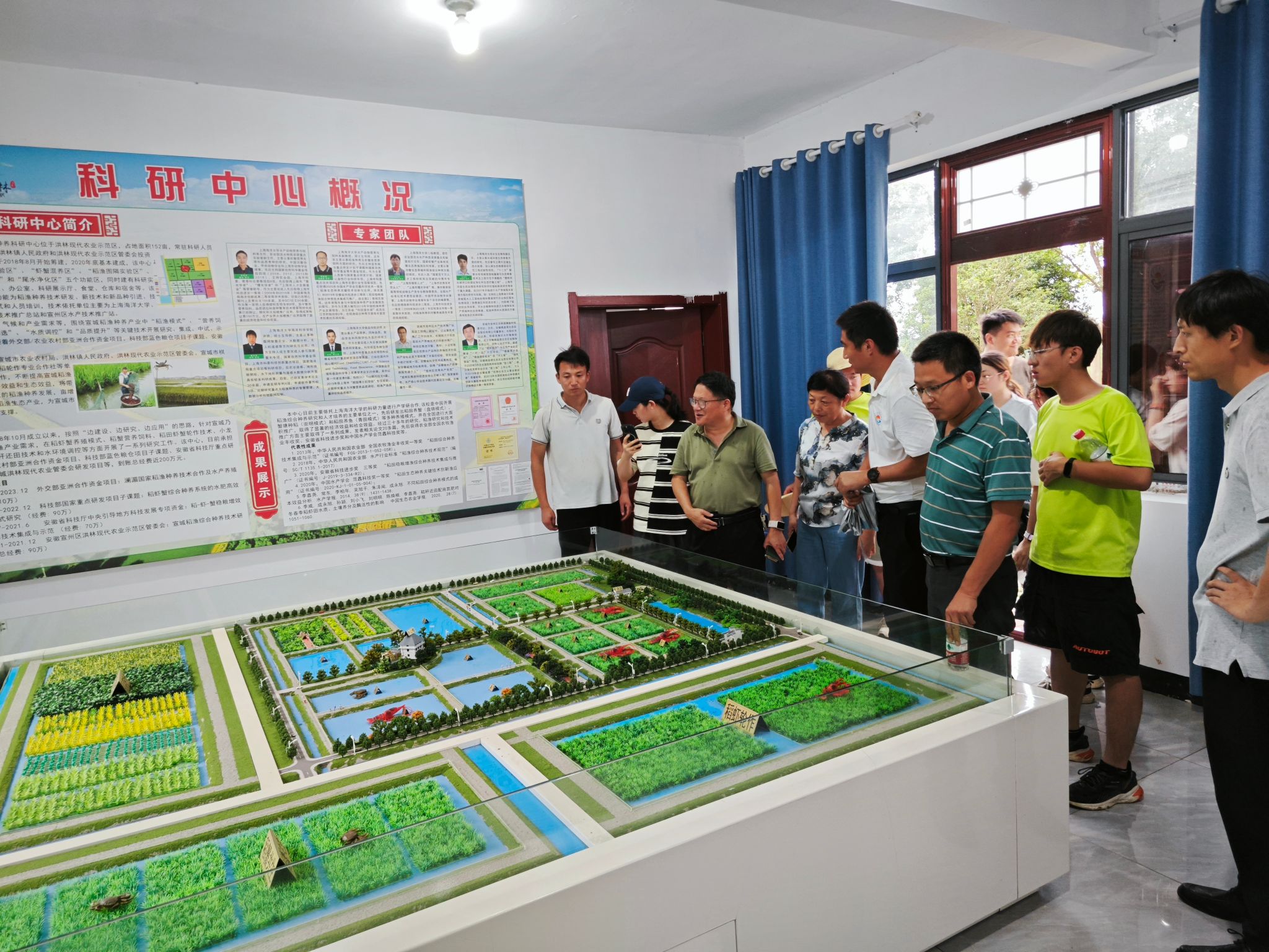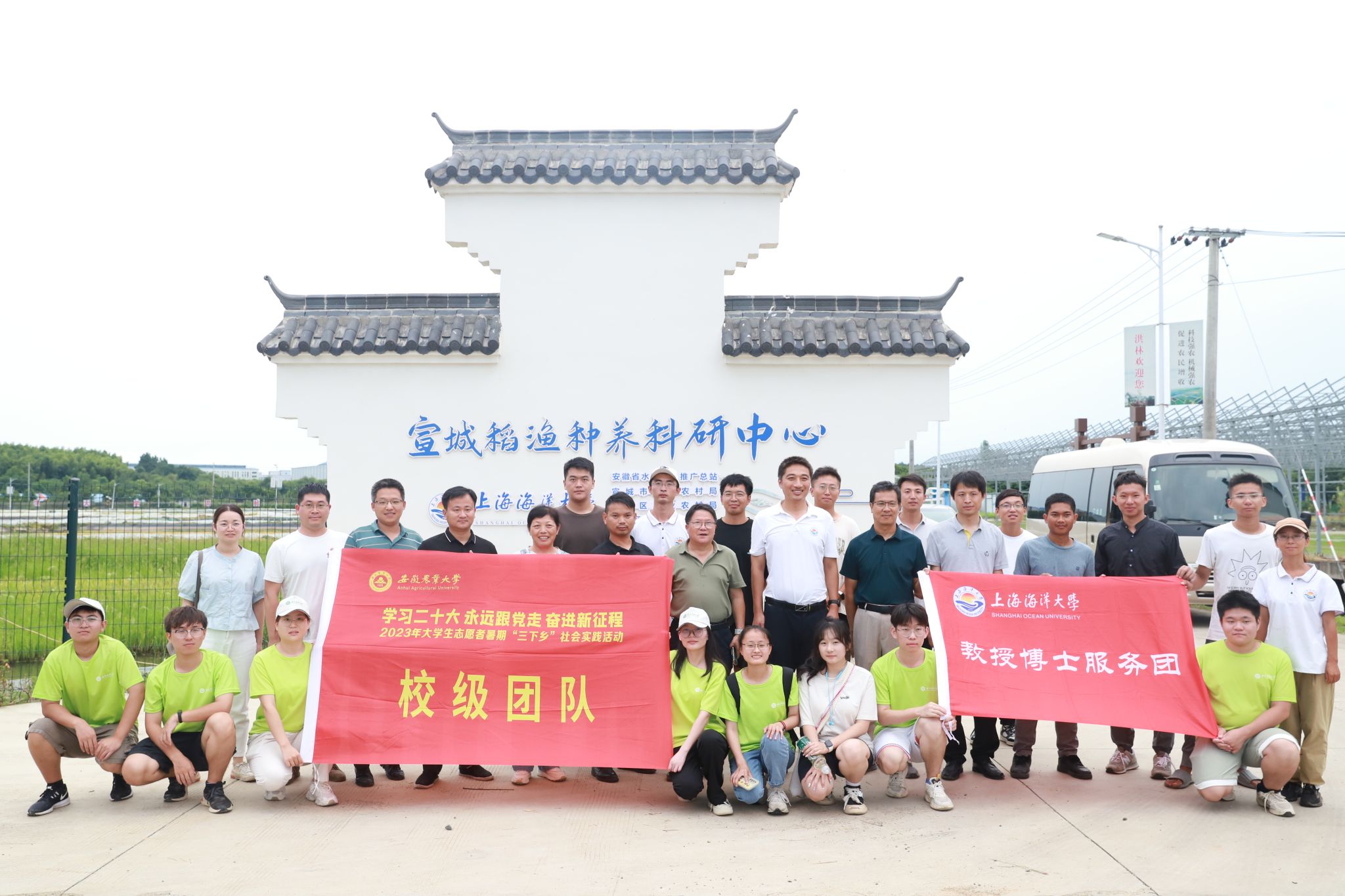 宣州区是安徽省河蟹养殖主产区,其中幼蟹产业已发展成为宣州区农业主导产业之一,年产河蟹蟹种约10亿只,其中宣州区水阳镇被中国渔业协会认定为“中国幼蟹第一镇”。目前,宣州区现有幼蟹养殖面积4.5万亩,成蟹养殖3万亩,其中仅水阳镇幼蟹养殖面积就超过4万亩。实践团队依托宣州水产特色试验站和宣州河蟹科技小院,开展河蟹养殖生产实践锻炼、渔业相关产业调研、与养殖户面对面、参观河蟹科技小院和座谈交流等主题活动。