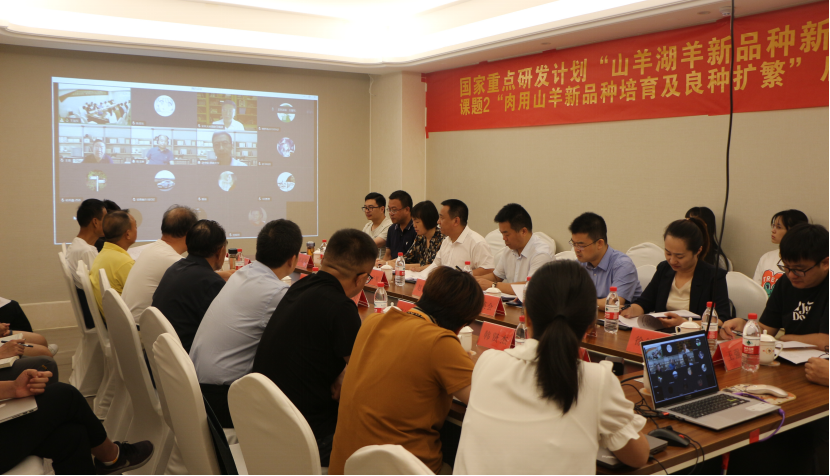 本网讯 7月28日,由安徽农业大学牵头的“十四五”国家重点研发计划“肉用山羊新品种培育及良种扩繁(2022YFD1300202)”课题启动会在安徽临泉县召开。项目首席西北农林科技大学副校长陈玉林教授、课题咨询专家南京农业大学王锋教授、特邀专家西北农林科技大学马保华教授、安徽省农业科学院朱德建研究员、安徽农业大学张运海教授,以及子课题负责人、联合育种企业负责人和课题骨干46人通过“线上+线下”的形式参加启动会。会议由课题负责人安徽农业大学动物科技学院张子军教授主持。