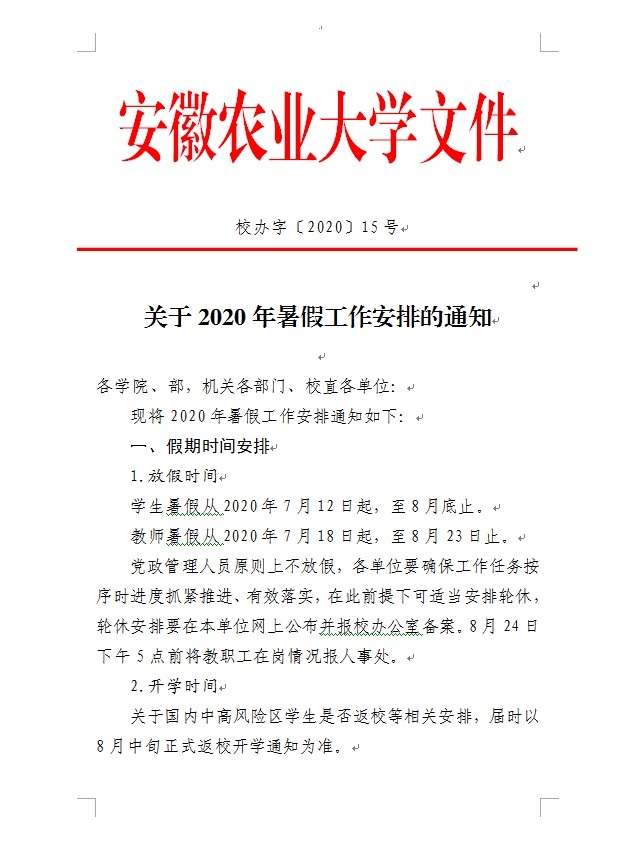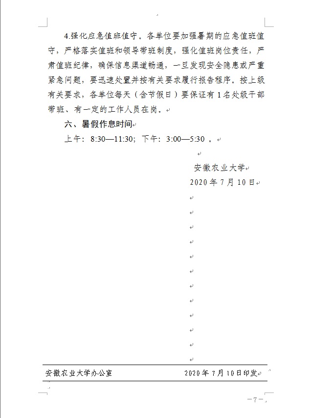 2020年暑假安排