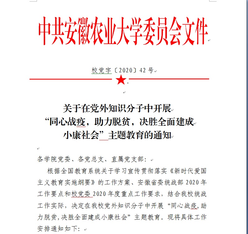 关于在党外知识分子中开展“同心战疫,助力脱贫,决胜全面建成小康社会”主题教育的通知