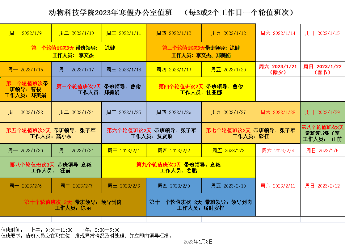 2023年寒假值班表