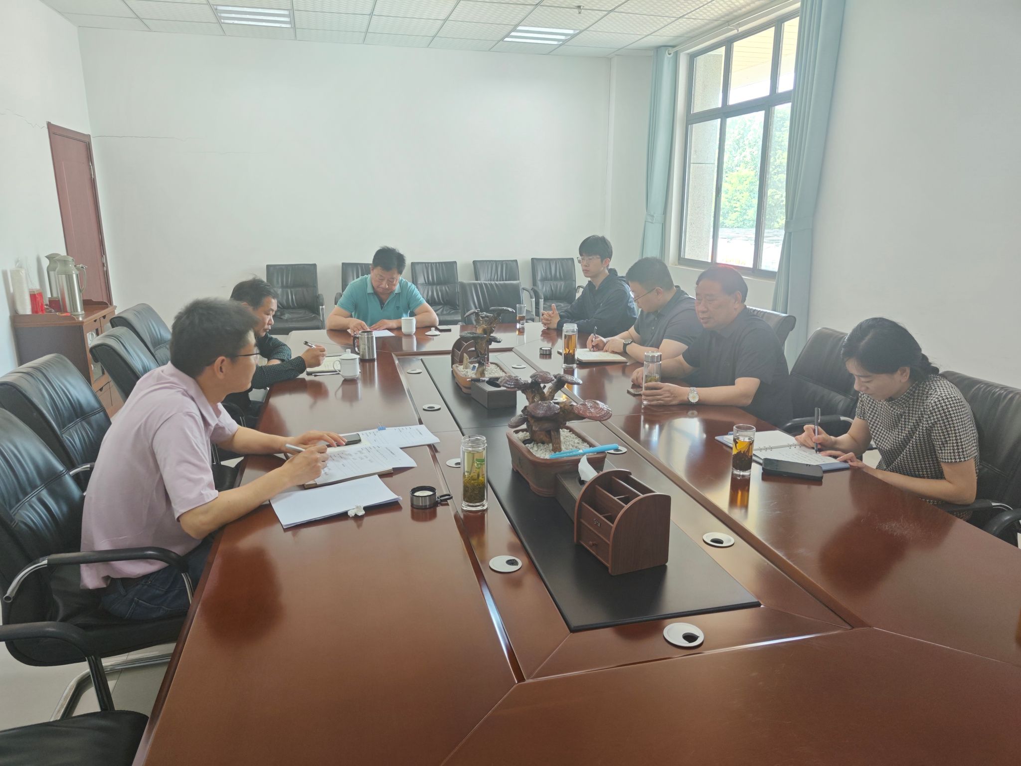 在安徽农业大学大别山综合试验站,党员们同县农业农村局和试验站负责人进行了工作交流,总结了生态养殖联盟取得的成绩和存在的不足,探讨了县域肉牛、黑毛猪、白鹅、蜂产业发展的规划和实施路径。