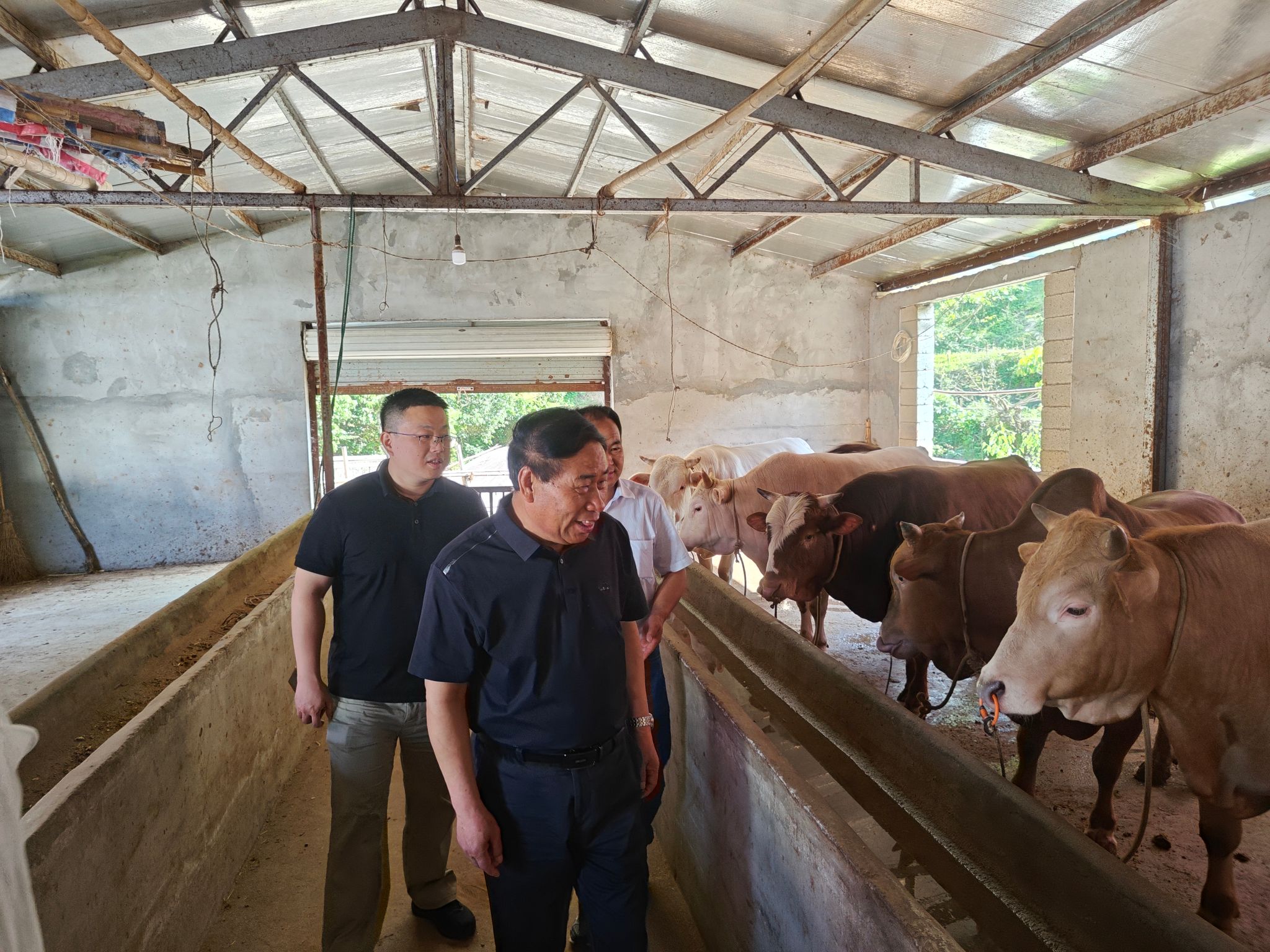 支部党员抵达金寨县强顺黄牛养殖农民专业合作社,实地考察了生产经营情况,与负责人进行了深入交流,针对肉牛养殖存在的技术问题提出了意见和建议,并就合作申报科技项目达成了共识。