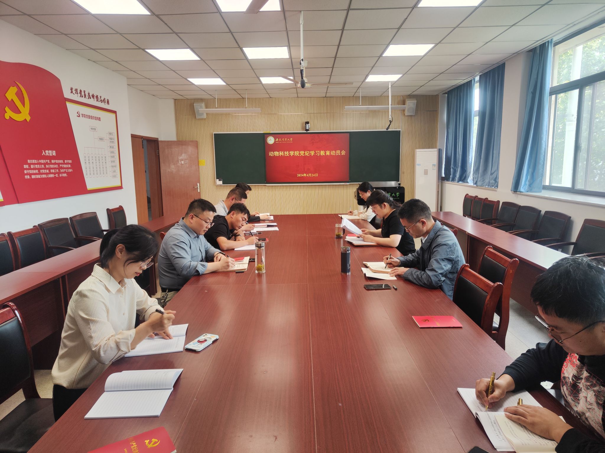 为深入贯彻落实习近平总书记关于党纪学习教育重要讲话和重要指示精神,全面落实党中央、省委和校党委部署要求,4月24日下午,动物科技学院党纪学习教育动员部署会在动科院306会议室举行,学院领导班子及全体党支部书记参加会议,会议由学院党委书记沈兆梅主持。