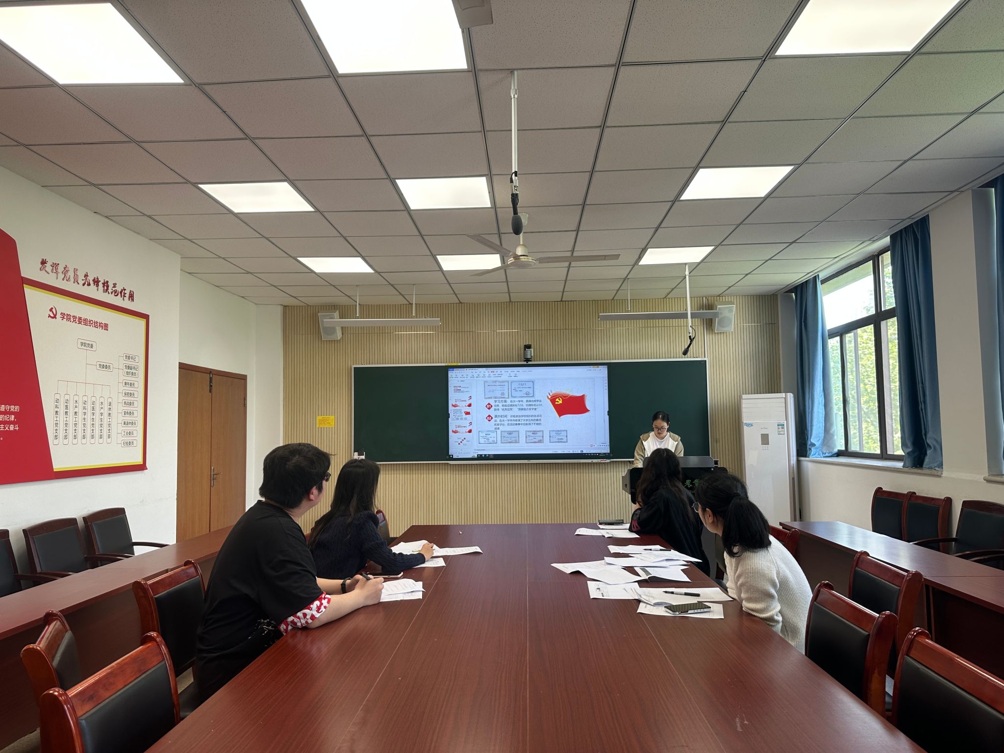 为进一步提升学生党员发展质量,切实增强发展工作的透明度,4月18日,动物科技学院举行2024年上半年党员对象答辩会,学院研究生党支部书记郑美娟、李文杰,本科生党支部书记郭佳、周德庆、汪前等五位老师担任本次答辩会的评委,部分学生党员代表参与评审。