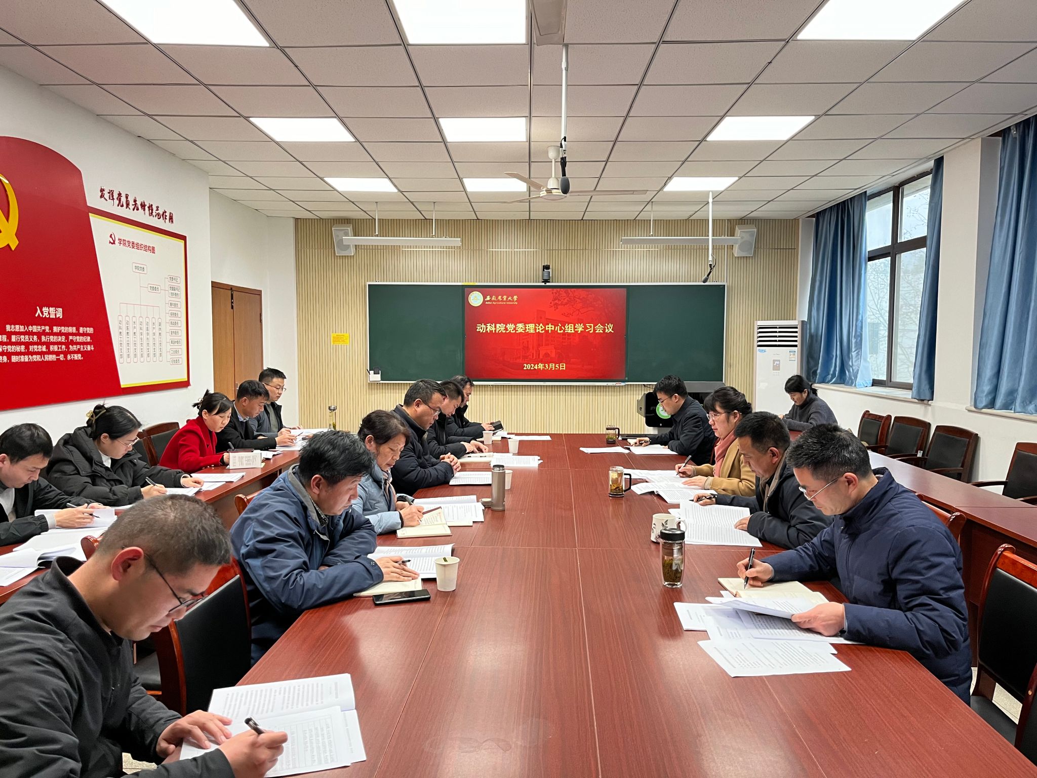 3月5日下午,动物科技学院召开党委理论学习中心组(扩大)学习会议,学院党委书记沈兆梅主持会议,学院领导班子成员、党委委员和各党支部书记参加会议。