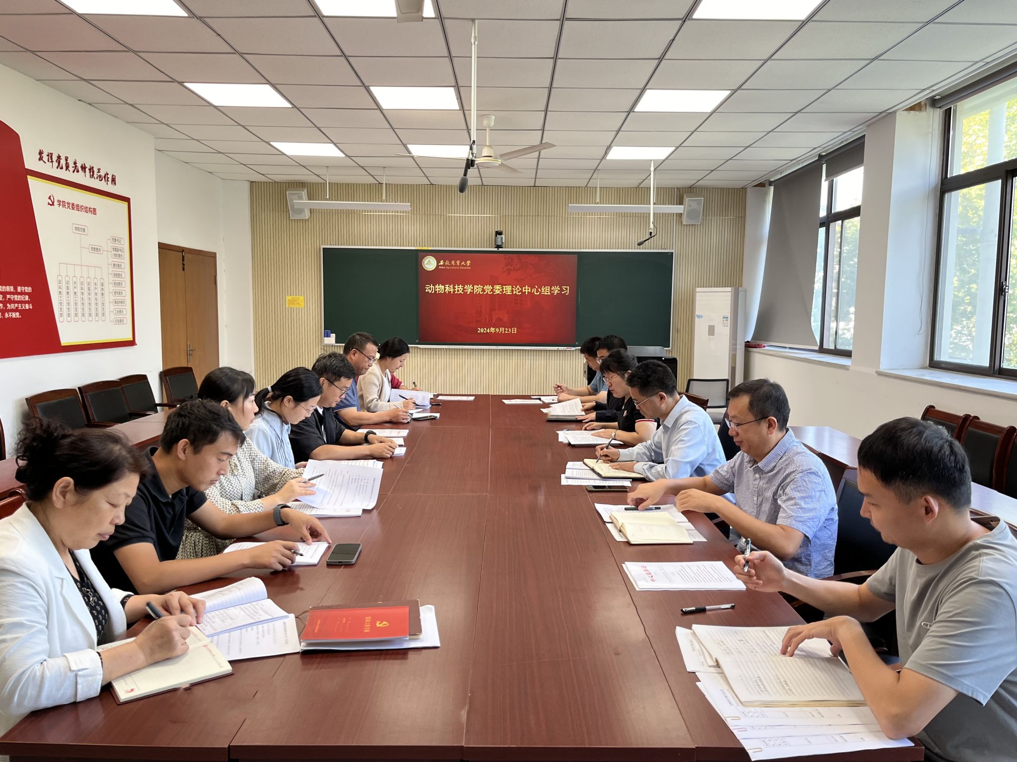 本网讯 9月23日上午,动物科技学院召开党委理论学习中心组(扩大)学习会议,深入学习贯彻党的二十届三中全会精神与习近平总书记在全国教育大会上的重要讲话精神。院领导班子成员、党委委员和各党支部书记参加会议。
