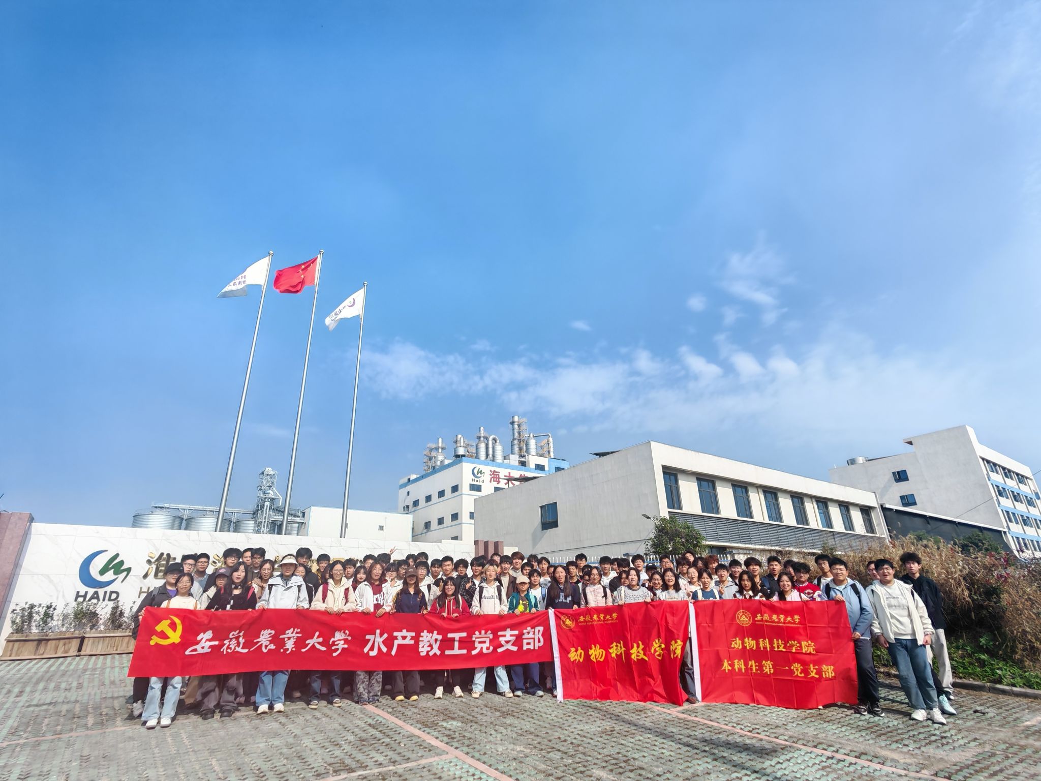 随后,师生一行前往淮南海大生物饲料有限公司。2010级校友王辉作为企业代表,介绍了公司发展历程、核心产品及行业影响力,并带领大家走进生产车间,近距离参观饲料全流程生产线,帮助新生明晰专业应用场景。
